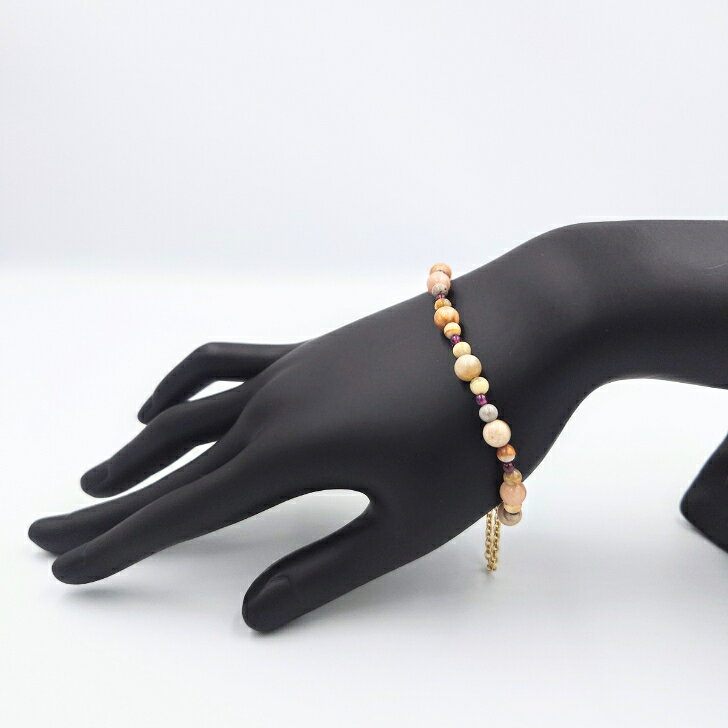 商品情報素材/材質ボツワナアゲート (ラウンド) 約4mm・6mmガーネット (ラウンド) 約3mm金具 マグネットクラスプ 真鍮金メッキ 約6mmチェーン 約5.5cmサイズ/寸法内周 約18cmその他商品説明ボツワナアゲートとガーネットを組み合わせた、温かみのある色合いが魅力的なブレスレットです。ボツワナアゲートの優しく柔らかなトーンと、ガーネットの深みのある赤色が、手元に落ち着いた華やかさを添えます。マグネットが外れた時の落下防止チェーン付きです。注意※モニターの発... 2,600円 税込 送料別 カードOK Fortunato ![]() | ||