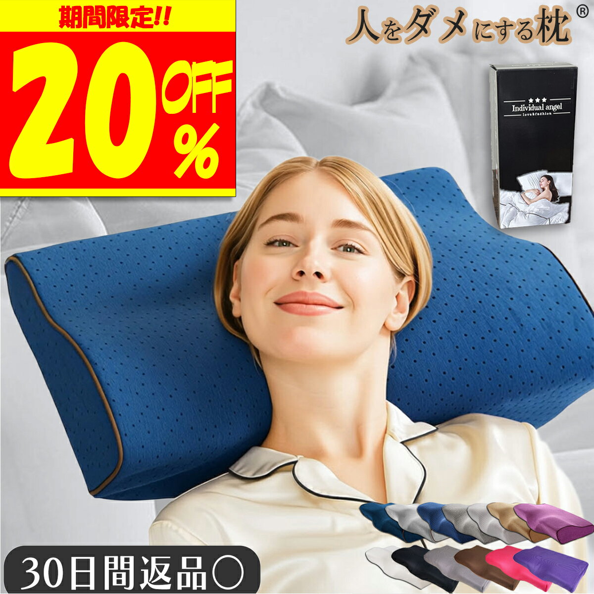 Individual angelの大ヒットシリーズ【人をダメにする枕】から、快眠をサポートする低反発枕が登場しました! 「人をダメにする枕」【ロイヤルタイプ】が、お客様から多くの声をいただき復刻版にて新発売! こちらのモデルは、どんな寝方にも対応できる優れものです。首や肩のが気になる方にもおすすめです。 この枕の特徴は、【人間工学に基づいたオリジナル形状】蝶形のデザインで、頭と首のカーブにぴったり合わせて作られているので、寝心地が抜群に良いんです。 首にかかる負担を軽減して、快適... 2,680円 税込 送料込 カードOK レビュー9815件 Individual angel ![]() | ||