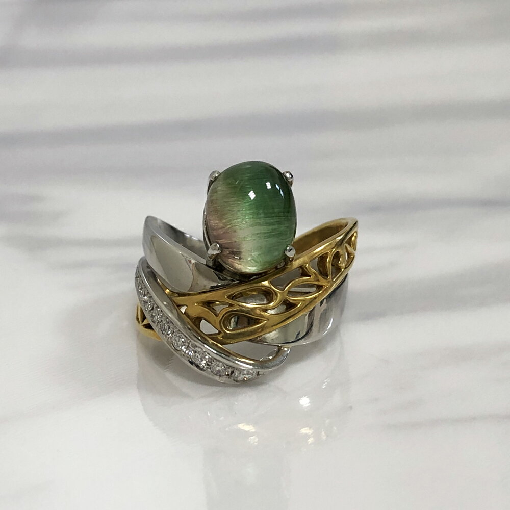 宝石名 バイカラートルマリン1.557ct ダイヤモンド0.52ct 地金素材 プラチナ(Pt900) 総重量 約3.5g サイズ #13 (±2迄無料・±2以上は 別途料金必要〜料金表参照〜) 最大幅約10mm 付属品 リングケース日独宝石研究所ミニ鑑別書付属 品質保証書 プレゼント包装 プレゼント用に包装をご希望のお客様はお申し付けください。 お届け日のご指定も可能です。 (代引きはご利用いただけません) ジュエリーの下取りサービス ジュエリーの下取りサービスなどもお気軽に ご相談く... 231,000円 税込 送料込 カードOK ジェムパレス ![]() | ||