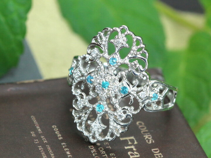 ─ Specスペック ─ 商品名 PT900 パライバトルマリン&ダイヤモンド リング指輪 石目 (カラット数) パライバトルマリン 約0.06ct前後 ダイヤモンド 約0.14ct前後 サイズ/重量 フロント幅:約20.6mm フロント厚み:2.9mm位 バックアーム幅:2.1mm 重量 4.5g リングサイズ 画像商品12号 7号〜16号サイズで作製可能です。 それ以外のサイズをご希望の場合は、お問い合わせください。 素材 PT900(プラチナ900) ご注意事項モニターの発色の具合によって実際のものと色が異なる場合がございます。あらかじめご了承くださいませ。 お問い合わせにてお色などのご相談賜ります。 また、ご来店(要ご予約)にて現物をご覧いただくことも可能です。 在庫について 当店のお品はすべて、店頭と同時販売を行っております。 迅速に在庫確認はしておりますが、タイムラグにて売り切れとなりお届けできない場合がございますことをご了承くださいませ。レースのような可憐で上品な仕上がりのプラチナリング。プラチナの繊細なラインとミルグレーディングだけでも十分に魅力的ですが、稀少石のパライバトルマリンが7石ちりばめられ、とても神秘的な雰囲気に仕上がっています。パライバトルマリンは、言うまでもなく稀少石として有名。稀少石ゆえに小粒でも色を合わせるのが困難なのですが、こちらは7石すべて色が揃っており、小さくても明瞭な彩りと光彩を放っていますからご期待ください。内包物の否めないパライバトルマリンですから、多少の内包物はあれど白濁感はゼロ。ネオンブルーの確かな光彩を放つ上質パライバトルマリンたちです!フラットで突出したデザインではないですから、普段使い、日常使いに最適ですね。指に馴染むようなレースデザイン。その中に主張する稀少石パライバトルマリンが神秘的に輝くリング、ありそうでない、心癒してくれるリングですよ。 パライバトルマリンParaibaTourmaline 10月誕生石 モース硬度:7-7.5 和名:藍玉 ■ レース×パライバトルマリン ■ 242,000円 税込 送料込 カードOK 拘りジュエリーSHOP Yコレクション ![]() | ||