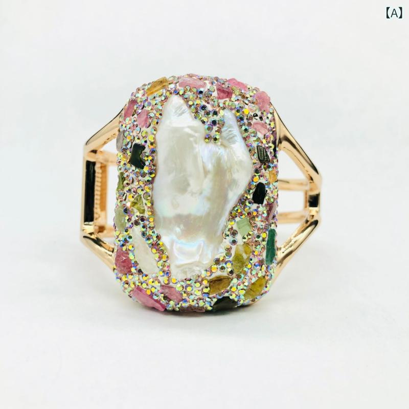 9. 【予約販売5~12営業日での発送】 バングル レディース 天然 不揃い バロックパール ワイド 幅広 カラフル トルマリン 欧米スタイル ファッション 通勤 エレガント 上品 高見え 大人カジュアル ・素材: 合金・加工技術: 象嵌・象嵌素材: ラインストーン・カラー: マルチカラー・流行要素: パール・スタイル: 欧米風・重量: 約78g・スタイル分類: ファッション通勤・カテゴリ: 手元アクセサリー・流行要素分類: ナチュラル 4,773円 税込 送料込 カードOK 花りぼん ![]() | ||
