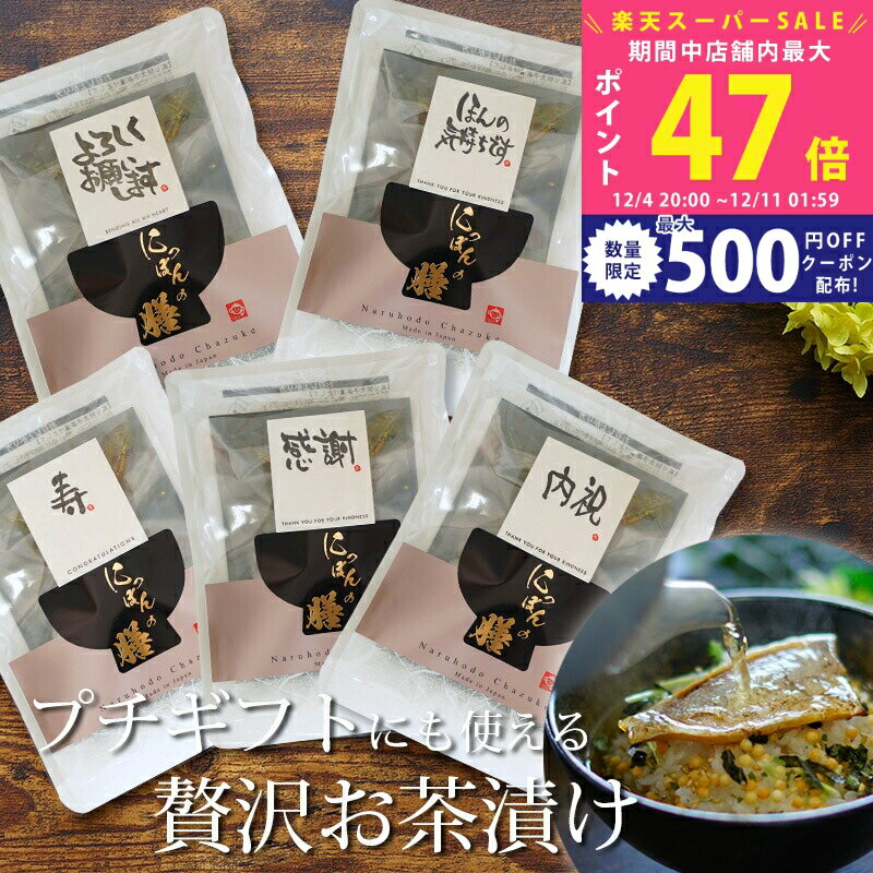【商品詳細】 ●賞味期間:製造より150日 ●7大アレルゲン ・蟹:卵 なし、乳成分 なし、小麦 あり、そば なし、落花生 なし、えび なし、かに あり ・炙りフグ:卵 なし、乳成分 なし、小麦 あり、そば なし、落花生 なし、えび なし、かに なし ・鮎:卵 なし、乳成分 なし、小麦 あり、そば なし、落花生 なし、えび なし、かに なし ・炭火鶏:卵 なし、乳成分 なし、小麦 あり、そば なし、落花生 なし、えび なし、かに なし ・鯛:卵 なし、乳成分 なし、小麦 あり、そば なし、落花生 なし、えび なし、かに なし ・炙り明太子:卵 なし、乳成分 なし、小麦 なし、そば なし、落花生 なし、えび なし、かに なし ※パッケージデザインが写真と異なる場合がございます。 海鮮系と炭火鶏もあるお茶漬けの種類を選んでいただけるので、何度か送っても飽きないプチギフトです。 ◆こんなご用途で◆引出物 ご挨拶や御礼 粗品といったごあいさつ品や 二次会 ゴルフコンペの景品 プチギフト ギフトならマルハートにおまかせ!料亭のお茶漬けをご自宅で 日本人なら少なからず1度は食べたことがあるお茶漬け。お家でサラッと食べることが多いお茶漬けは、「お手軽」なイメージですが、たまに食べる高級料亭や旅館のお茶漬けって、具もゴロゴロしてて贅沢ですよね。 そんな本格的なお茶漬けがお家で味わえたら…。 大切なあの人に、御礼の気持ちと共にお届けするのは、そんな贅沢な気分を味わえる時間。見た目のインパクトもさることながら、具材や出汁にもこだわった本格お茶漬け。 これこそ、もらって嬉しい御礼の品「本格だし茶漬け」です。 選べるお茶漬けは6種類から いつも家では味わえないような高級食材から、えっ、これもお茶漬け!?とあまり馴染みのない食材まで6種類をご用意しました。 新鮮な食材を丸ごと真空パックしているから、具材がゴロッとご飯を覆います。 インパクト重視なら鮎(アユ)がおすすめ。食べ応えのある高級食材には鯛(たい)と炙りふぐ。そしてお茶漬けには珍しい蟹(カニ)。柚子胡椒の香りが上品な炙り明太子。そして男性スタッフ一番人気が意外にも炭火鶏。炭火の香ばしさがクセになる味。 いつものお茶漬けでは味わえない、見た目にも贅沢なお茶漬け。どれをお贈りしても、きっと喜んでいただけます。 用意するのはあったかいご飯と熱々のお湯 お茶漬けには、特製の具材と出汁つゆ付きです。出汁つゆは、化学調味料を一切使用していない無添加。ダシも醤油もこだわりの素材を使用した、香りも味も極上の黄金つゆ。丸ごと具材の旨味がより引き出されます。 あったかいごはんに具材のあられや薬味たちをふりかけて、丸ごと具材をドーンっと乗っけて。そして液体だしつゆは、熱々のお湯でお好みの濃さに調整したらごはんと具材全体に注ぐだけ。本格お茶漬けがあっという間に出来上がり。 お茶漬けの種類を見てみる お茶漬けを選んで今すぐ購入する 取扱商品数2000点以上!\ 様々なニーズにお応えします♪ / 出産祝いカタログギフト~¥15000 出産祝いカタログギフト¥15001~ 出産祝い名入れ 出産祝いギフトセット~¥10000 出産祝いギフトセット¥10001~ 内祝いカタログギフト 香典返しカタログギフト タオルギフト お菓子ギフト 記念品 ~¥ 5,000 ¥ 5,001~¥ 10,000 ¥ 10,001~¥ 20,000 ¥ 20,001~¥ 30,000 ¥ 30,001~¥ 50,000 ¥ 50,001~ 540円 税込 送料別 カードOK レビュー3件 ギフト マルハート ![]() | ||