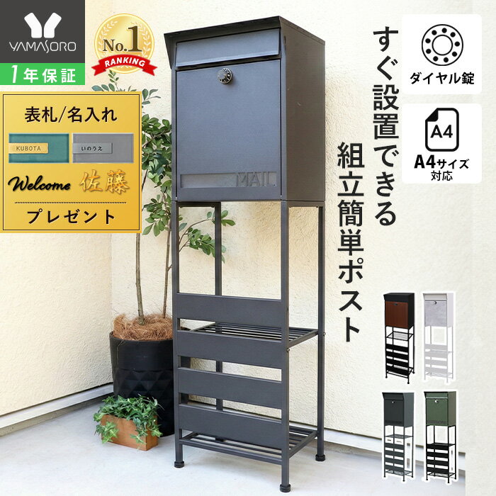 商品詳細 商品について 置き型のスタンドポストとして玄関まわりに馴染むデザイン性と、機能性を兼ね備えた郵便ポストです。 前面が目隠し仕様になっているため、内部の収納物が見えにくくすっきりした印象に。大きく開く扉は郵便物の出し入れがしやすく、ダイヤルロック錠付きで安心感もあります。 さらに便利な棚付きデザインで、小物のちょい置きにも対応。1年保証付きで、長くお使いいただけるアイテムです。モダンなカラー展開で住まいの雰囲気に合わせてお選... 11,800円 税込 送料込 カードOK レビュー891件 ヤマソロ 楽天市場店 ![]() | ||