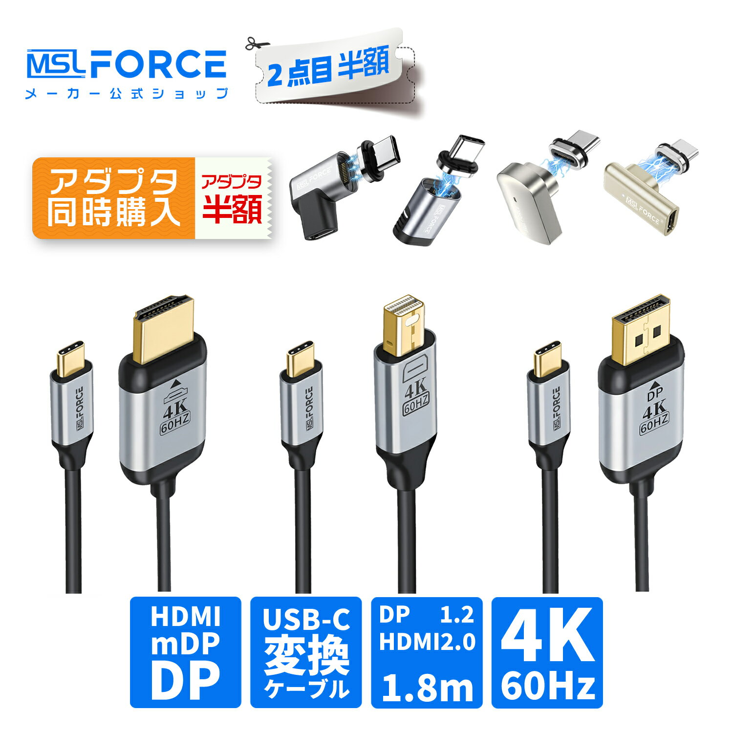 関連商品 【iPhone15 Plus Pro Max対応】適格請求書発行可 変換アダプター usb type c ディスプレイポートケーブル 1380円 Type-C (オス) to HDMI (オス) 変換ケーブル ストレート L字 1580円~2480円 usb Type-C (オス) to HDMI (メス) 変換ケーブル 4k 1780円 USB-C (オス) to Mini DisplayPort (メス) ディスプレイポート 1380円 USB-C(オス)to DisplayPort(メス)変換ケーブル 変換アダプタ 1380円 Type-C (オス) to VGA (メス) 変換アダプター type c タイプc 変換アダプタ 1580円 商品説明 ■USB-C to Mini DisplayPort/DP/HDMI 変換ケーブル USB-Cポート搭載のPCからMini Displayport/DP/HDMI対応のモニターやHDTV、プロジェクターにデータを変換するケーブルです。※単一方向のみ対応のためMini Displayport/DP/HDMIからUSB-Cへの変換は非対応です。 ■4K@60Hz解像度 本製品を接続してPCからモニターにミラーリングや拡張することができます。4K@60Hz(最大3840x2160 )の解像度に対応します。 ■優れたデザイン 断熱性を高めるためのプレミアムアルミニウム合金を使用し、コネクタには24K金メッキが施され最大5.4Gbpsの高速伝送が可能です。ケーブルは断線しにくい太線で丈夫な作りになっています。 ■3種類の変換タイプ 用途に合わせて以下の3タイプからお選びいただけます。 ・USB-C → mini DisplayPort ・USB-C → DisplayPort(DP1.2対応) ・USB-C → HDMI(HDMI2.0対応) 【注意事項】 ※USB-C to miniDPはThunderbolt 3に対応しています。 ※DP AltモードのPC、スマートフォン、タブレットのみ機能します。2018年以前のスマートフォン、タブレットは対応しない場合がございます。 ※商品ご使用時の破損や事故などについては責任を負いかねます。 ※入荷時期によって、サイズ・重量・色味・デザイン等は多少の誤差が生じる場合がございます。予めご了承ください。 ※商品の画像はお客様がご覧になっているモニター・画面環境・照明などの関係上、実際の色味と多少異なる場合がございます。 ※万が一、製造上の原因による品質不良の場合は同等品との交換となりますので、それ以外の責はご容赦下さい。 ※本製品は主にPCやモニターなどに対応しており、カーナビなど車に接続するとエラーになる場合がございますのでご注意ください。 ※iPhone15全シリーズ(iOSバージョン 17.02)との相互性は確認済です。 1,500円 税込 送料込 カードOK レビュー50件 MSL FORCE公式楽天市場店 ![]() | ||
