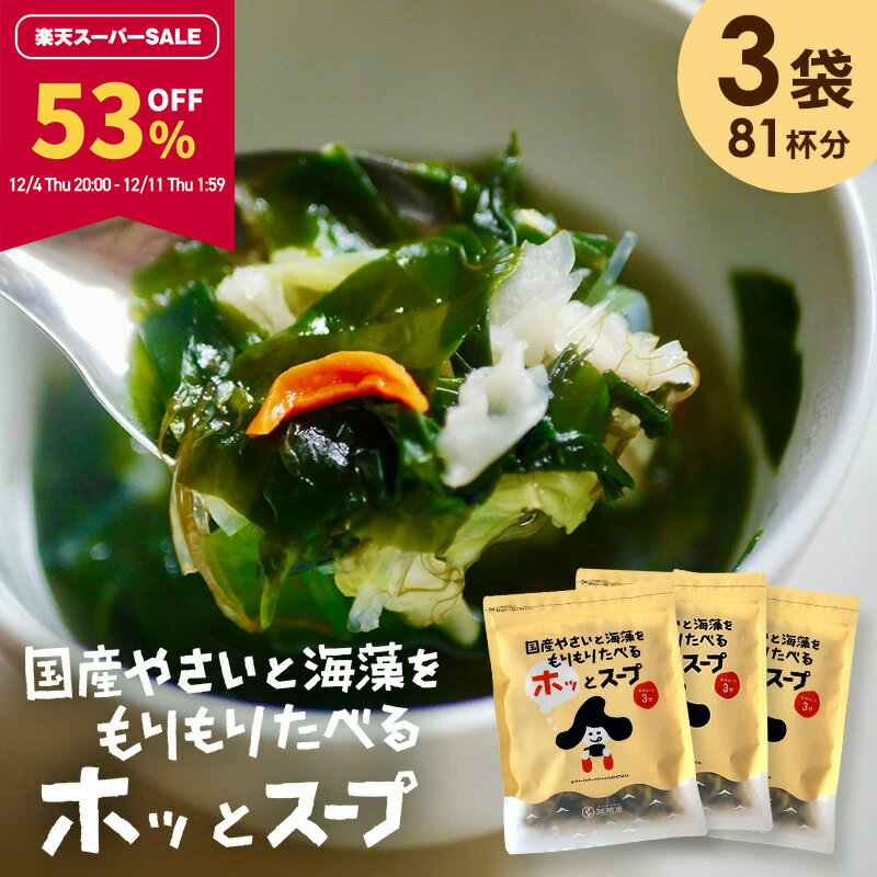 【必ずご確認ください】 ・発送日から4営業日前後にてお届けされます。 ・しかし、土日祝日は配達されない地域がございます。 ・追跡番号987から始まる番号は弊社管理番号です。 ・商品はポストに投函されます。 ・2セット以上ご購入の場合、ポストの状況や郵便局様の事情で別日に配達される場合がございます。 感謝!感謝!の 低カロリー スープ 福袋 50食入り【送料無料】 メール便送料無料!ポイント消化にもおすすめです! 当店で人気のアミュード小袋スープセットが遂に10万食突破!感謝の気持ちを込めて、お買い得なスープ福袋をご用意いたしました。 ●1食当たり10kcalと低カロリー!小腹が空いた時に最適です。 ●人気の4つの味がランダムで入っています。 ●賞味期限が長いから、いざという時の保存食としても! 【4つのスープのご紹介】 ●オニオンスープ 玉ねぎを含む野菜のエキスがたっぷり入ったスープです。 コンソメベースにローストした玉ねぎの甘味が加わり、奥深い味わいに仕上げました。溶き卵を落として一煮立ちさせると、ちょっと高級感のあるスープに変身します。また、オムライスなど洋食メニューの隠し味として加えれば、ワンランクアップのテイストになりますよ! ●わかめスープ チキンをベースに生姜の辛さを効かせた口当たりの良いスープです。 具材感たっぷりのわかめと香ばしい胡麻の香りが、 より一層美味しさを引き立てます。洋風&和風&中華いずれの料理にも合い、重宝します。 ●中華スープ スパイシーで味わい深いスープに仕上げました。 リピーター率上位の人気商品です。中華系の料理に隠し味として加えると、本格的な中華料理になります! ●お吸いもの 鰹だしがベースのわかめ入りお吸いものです。 まろやかで上品な味に仕上げました。 【お召し上がり方】 容器に中身を出し、150mlの熱湯を注ぎ、よく混ぜて召し上がりください。 【商品詳細】 ●オニオンスープ 原材料:食塩(国内製造)、チキンコンソメ(食塩、乳糖、ぶどう糖、チキンエキス、その他)、糖類(ぶどう糖、砂糖)、ローストオニオンパウダー(オニオンフレーク、デキストリン)、野菜エキスパウダー、食用植物油脂、香味油、酵母エキス調味料、たん白加水分解物、胡椒、うきみ(パセリ)/調味料(アミノ酸等)、カラメル色素、酸味料、香料、香辛料抽出物、(一部に小麦・乳成分・鶏肉・ゼラチン・牛肉・豚肉・大豆を含む) アレルギー:小麦・乳成分・鶏肉・ゼラチン・牛肉・豚肉・大豆 内容量:3.8g ●わかめスープ 原材料:食塩(国内製造)、ぶどう糖、粉末しょうゆ(しょうゆ、デキストリン、食塩)、チキンコンソメ(食塩、乳糖、ぶどう糖、チキンエキス、その他)、オニオンパウダー、香辛料、大豆、酵母エキス調味料、酵母エキス、デキストリン、食用植物油脂、うきみ・具(わかめ、白いりごま、ねぎ)/調味料(アミノ酸等)、酸味料、香料、(一部に小麦・乳成分・大豆・ごま・鶏肉・ゼラチン・牛肉・豚肉を含む) アレルギー:小麦・乳成分・大豆・ごま・鶏肉・ゼラチン・牛肉・豚肉 内容量:3.8g ●中華スープ 原材料:食塩(国内製造)、糖類(ぶどう糖、砂糖)、粉末しょうゆ(しょうゆ、デキストリン、食塩)、チキンコンソメ(食塩、乳糖、ぶどう糖、チキンエキス、その他)、ポークエキスパウダー、食用植物油脂、人参エキスパウダー、オニオンパウダー、油脂加工品、大豆、香辛料、うきみ(ねぎ)/調味料(アミノ酸等)、カラメル色素、酸味料、香料、(一部に小麦・乳成分・大豆・鶏肉・ゼラチン・牛肉・豚肉を含む) アレルギー:小麦・乳成分・大豆・鶏肉・ゼラチン・牛肉・豚肉 内容量:4.2g ●お吸いもの 原材料:食塩(国内製造)、糖類(ぶどう糖、砂糖)、粉末しょうゆ(しょうゆ、デキストリン、食塩)、わかめ、麩、かつお風味調味料(食塩、ぶどう糖、たん白加水分解物、かつお粉末、その他)、たん白加水分解物、食用植物油脂/調味料(アミノ酸等)、酸化防止剤(V.E)、(一部に小麦・乳成分・大豆・鶏肉を含む) アレルギー:小麦・乳成分・大豆・鶏肉 内容量:3.4g 賞味期限:お届けから9ヶ月以上 保存方法:直射日光、高温多湿を避け冷暗所(30℃以下)で保存して下さい。 販売者:アミュード株式会社 埼玉県さいたま市緑区東浦和1−22−5 1,080円 税込 送料込 カードOK レビュー15件 お取り寄せグルメ本舗 ![]() | ||