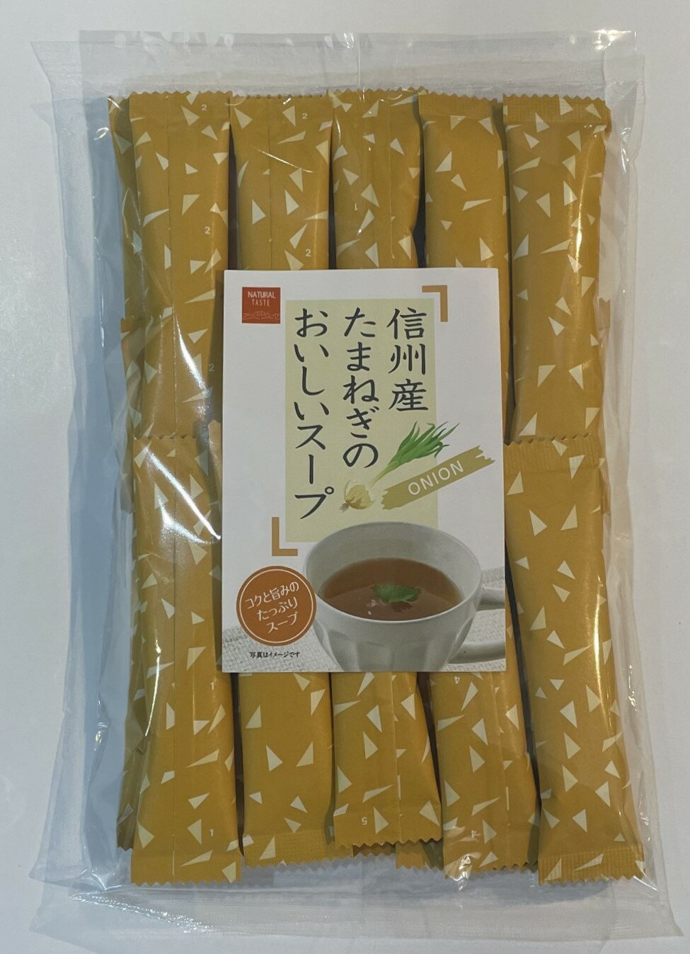 たまねぎが本来もつコクと旨みをそのままに引き出しました。 名称 粉末スープ 原材料名 食塩、糖類(グラニュー糖、砂糖、ブドウ糖)、オニオン、醤油粉末、乾燥ねぎ、玉葱外皮粉末、植物蛋白、チキン粉末、植物油、デキストリン、黒胡椒、粉末酒、ガーリック末、酵母エキス粉末、澱粉/調味料(アミノ酸等)、加工デンプン、着色料(カラメル)、酸味料、増粘剤(グァーガム)、炭酸カルシウム、香料、酸化防止剤(ビタミンE)、〔一部に小麦、大豆、鶏肉を含む〕 内容量 150g(5gx 25包) 保存方法 直射日光、高温・多湿を避け保存 販売者 株式会社 信州芽吹堂長野県松本市村井町北2丁目13番71号0120-353-905 【のしについてのご注意事項】※商品個別の梱包が箱ではない商品の場合、ラッピングは袋包装になります。※セット商品について、下記のようなご希望がございましたら詳細を備考にご記載ください。・商品に個別の包装を希望する場合・個数指定して配送先を分ける場合 1,188円 税込 送料別 カードOK レビュー1件 タングラムオンラインショップ ![]() | ||