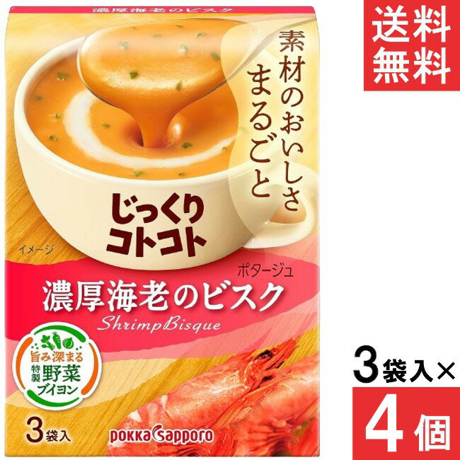 ■この商品のセット内容■ ポッカサッポロ じっくりコトコト 濃厚海老のビスク 3袋入×4個 ■配送について■ ※本商品はゆうパケットにて全国送料無料商品です。 ポストに入らなかった場合のお届け場所指定の ご協力をお願いします。 直接受け取りご希望の場合は【08_宅配便へ変更(追加送料400円)】 をご選択ください。 ■製品情報■ 海老の旨みがたっぷりとけこんだ、濃厚クリーミーな海老のビスクです。 海老のみそのような深みのある贅沢な旨みとなめらかなくちあたりで、素材のおいしさをまるごと味わえます。 たまねぎやキャベツの芯も活用した特製野菜ブイヨンも濃厚さのヒミツ。 ■原材料:えび調味パウダー(国内製造)(えび頭エキス・オイル、デキストリン、食塩、おきあみ・えび抽出エキス、その他)、クリーミングパウダー、クリーム加工品(植物油脂、クリーム、乳糖、乳たんぱく、その他)、乳糖、ミルポアパウダー、トマトパウダー、えび風味パウダー、ソテーオニオンエキス、甘えびパウダー、食塩、パプリカパウダー、砂糖、バター加工品、野菜・フィッシュブイヨン、ブランデーパウダー、うきみ(乾燥パセリ)/増粘剤(加工でん粉、グァーガム)、調味料(アミノ酸等)、微粒二酸化ケイ素、香料、(一部にえび・小麦・乳成分・大豆・鶏肉・豚肉を含む) リニューアルに伴い、パッケージ・内容等予告なく変更する場合がございます。予めご了承ください。 1,584円 税込 送料込 カードOK レビュー1件 I.C(アイシー)〜さくら〜 ![]() | ||