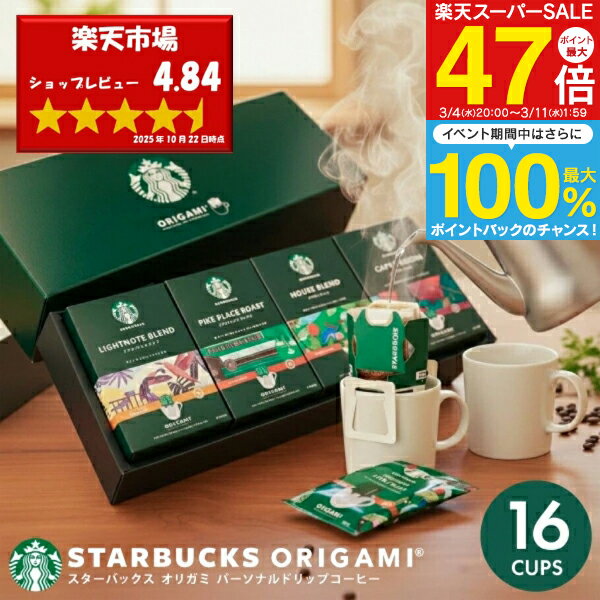 商品詳細 最高の珈琲(コーヒー)豆を求めて世界中を旅し続けてきたスターバックスが、コーヒー豆のおいしさを最大限に引き出し、一杯分ずつ大切に包み込んでお届けする『ORIGAMI』。一杯ごとに挽きたての香りと味わいが広がります。 ※ホットコーヒーもアイスコーヒーでも美味しくいただけます ○【STARBUCKS】スターバックスオリガミパーソナルドリップコーヒー ・ハウスブレンド(9g×4P)×1箱 ・ライトノートブレンド(9g×4P)×1箱 ・パイクプレイスロースト(9g×4P)×1箱 ・カフェベロナ(9g×4P)×1箱 ○化粧箱:164×410×87mm ○賞味期限:製造より270日間 詳しくは無料ラッピングサービスページをご覧ください。 のし上、のし下をご用途に合わせてお入れすることができます。 無料でこちらからお好きなデザインをお選びいただけます。 ●さまざまなギフトシーンにご利用いただけます。内祝 内祝い お祝い返し ウェディングギフト ブライダルギフト 引き出物 引出物 結婚引き出物 結婚引出物 結婚内祝い 出産内祝い 命名内祝い 入園内祝い 入学内祝い 卒園内祝い 卒業内祝い 就職内祝い 新築内祝い 引越し内祝い 快気内祝い 開店内祝い 二次会 披露宴 お祝い 御祝 結婚式 結婚祝い 出産祝い 初節句 七五三 入園祝い 入学祝い 卒園祝い 卒業祝い 成人式 就職祝い 昇進祝い 新築祝い 上棟祝い 引っ越し祝い 引越し祝い 開店祝い 退職祝い 快気祝い 全快祝い 初老祝い 還暦祝い 古稀祝い 喜寿祝い 傘寿祝い 米寿祝い 卒寿祝い 白寿祝い 長寿祝い 金婚式 銀婚式 ダイヤモンド婚式 結婚記念日 ギフト ギフトセット セット 詰め合わせ 贈答品 お返し お礼 御礼 ごあいさつ ご挨拶 御挨拶 プレゼント お見舞い お見舞御礼 お餞別 引越し 引越しご挨拶 記念日 誕生日 父の日 母の日 敬老の日 敬老会 記念品 卒業記念品 定年退職記念品 ゴルフコンペ コンペ景品 景品 賞品 粗品 お中元 御中元 お歳暮 御歳暮 お年賀 御年賀 残暑見舞い 年始挨拶 話題 のし無料 メッセージカード無料 ラッピング無料 手提げ袋無料 大量注文 お香典返し 香典返し 志 満中陰志 弔事 会葬御礼 法要 法要引き出物 法要引出物 法事 法事引き出物 法事引出物 忌明け 四十九日 七七日忌明け志 一周忌 三回忌 回忌法要 偲び草 粗供養 初盆 供物 お供え ●さまざまなギフトシーンにご利用いただけます。内祝 内祝い お祝い返し ウェディングギフト ブライダルギフト 引き出物 引出物 結婚引き出物 結婚引出物 結婚内祝い 出産内祝い 命名内祝い 入園内祝い 入学内祝い 卒園内祝い 卒業内祝い 就職内祝い 新築内祝い 引越し内祝い 快気内祝い 開店内祝い 二次会 披露宴 お祝い 御祝 結婚式 結婚祝い 出産祝い 初節句 七五三 入園祝い 入学祝い 卒園祝い 卒業祝い 成人式 就職祝い 昇進祝い 新築祝い 上棟祝い 引っ越し祝い 引越し祝い 開店祝い 退職祝い 快気祝い 全快祝い 初老祝い 還暦祝い 古稀祝い 喜寿祝い 傘寿祝い 米寿祝い 卒寿祝い 白寿祝い 長寿祝い 金婚式 銀婚式 ダイヤモンド婚式 結婚記念日 ギフト ギフトセット セット 詰め合わせ 贈答品 お返し お礼 御礼 ごあいさつ ご挨拶 御挨拶 プレゼント お見舞い お見舞御礼 お餞別 引越し 引越しご挨拶 記念日 誕生日 父の日 母の日 敬老の日 敬老会 記念品 卒業記念品 定年退職記念品 ゴルフコンペ コンペ景品 景品 賞品 粗品 お香典返し 香典返し 志 満中陰志 弔事 会葬御礼 法要 法要引き出物 法要引出物 法事 法事引き出物 法事引出物 忌明け 四十九日 七七日忌明け志 一周忌 三回忌 回忌法要 偲び草 粗供養 初盆 供物 お供え お中元 御中元 お歳暮 御歳暮 お年賀 御年賀 残暑見舞い 年始挨拶 話題 のし無料 メッセージカード無料 ラッピング無料 手提げ袋無料 大量注文 マナー 3,780円 税込 送料別 カードOK レビュー1966件 OCULU.ギフト(オクル.ギフト) ![]() | ||