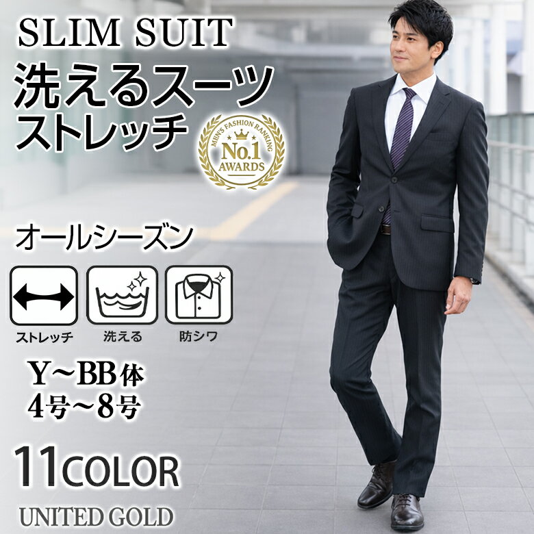 【上下ウォッシャブル・スリムスーツ】 ジャケットは2つボタン、センターベント。裏地は総裏仕立てと背抜き仕立ての2タイプをご用意しました。総裏仕立ては秋冬春のスリーシーズンに。背抜き仕立てはオールシーズン対応しています。パンツはノータックスリムスタイル、細くなり過ぎず程よくスリムなスタイリッシュなシルエットです。 生地にはソフトな触感でストレッチ性のある素材を使用。 シワに強く耐久性、速乾性に優れており、ジャケット、パンツともご家庭で洗えてお手入れも簡... 13,800円 税込 送料込 カードOK レビュー874件 メンズスーツKOKUBO ![]() | ||
