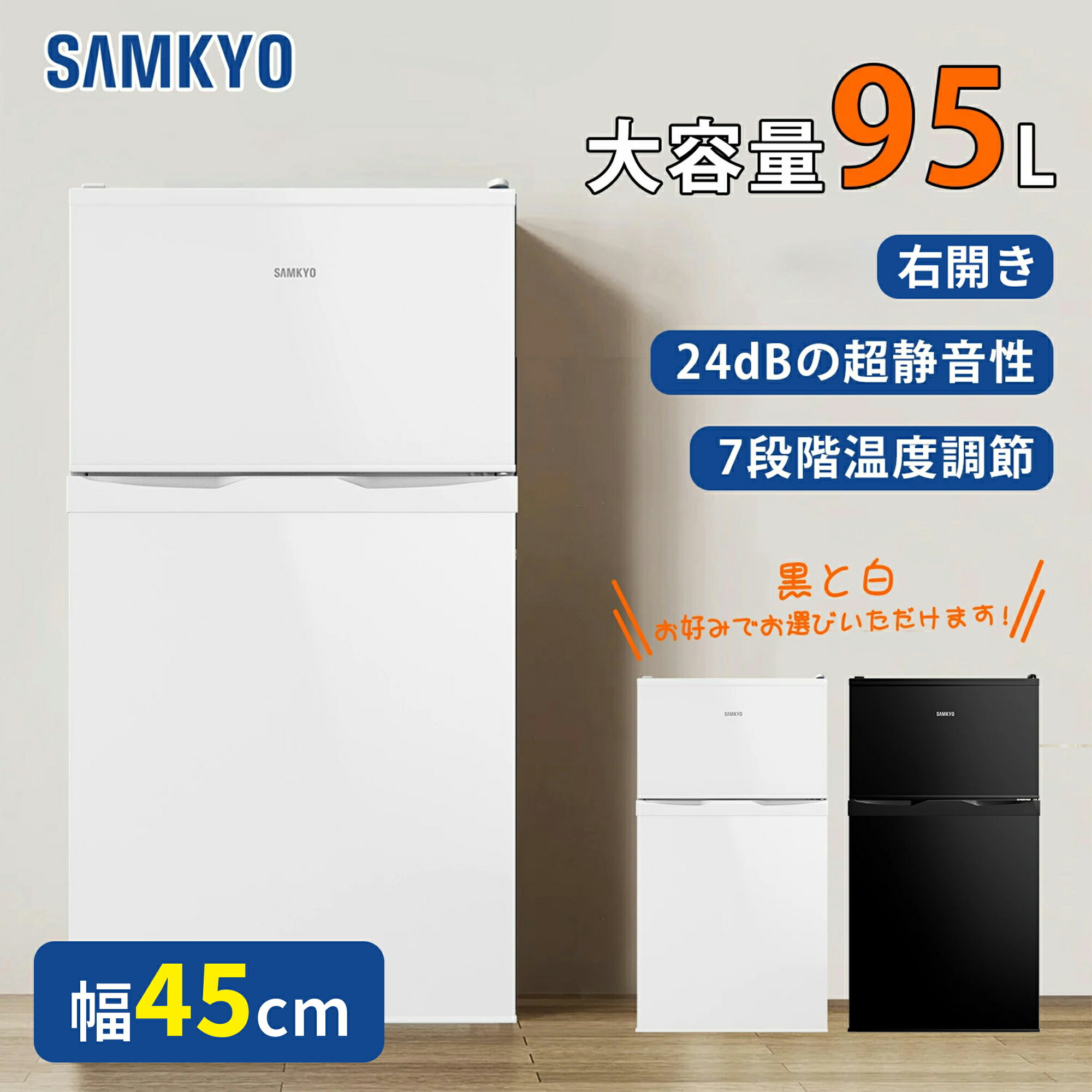 メーカー希望小売価格はメーカーサイトに基づいて掲載しています 商品説明 --------------------------------------------- 【コンパクト・大容量】 長さ49cm、幅45cm、高さ82.5cm、占地面積わずか0.14畳、総容量95L(冷凍室28L、冷蔵室67L)。 ・1~2人暮らし向け。 コンパクトなのに様々な食材をたっぷり入れたり、簡単に収納したりすることができます。 ・場所を取らない。キッチンや寝室、リビングを最大限に活用できます。 限られたスペースでも手詰まりに感じさせません。 【便利な収納スペース】 ・冷凍室: 主に冷凍食品や凍結肉、アイスクリームなどの保存に適しています。食材の新鮮さを保ち、いつでも美味しいものを楽しむことができます。 ・2層透明棚: 階層分けされ、缶詰やパッケージ入りの食品などを手軽に配置できます。もはや食材が埋もれる心配はなく、必要なものが簡単に見つかります。 ・底部トレー: ばらばらのお野菜をまとめて収納できます。 ・ドアポケット: 牛乳、卵、飲み物などをきちんと整理できます。 【8段階の温度調節】 ・急速冷却技術により、食材が素早く理想的な温度に達します。暑い夏でも、食材の鮮度を簡単に保つことができます。 ・異なる季節やニーズに合わせて、簡単なダイヤル操作で7段階の温度調節が可能です。一度に冷凍室と冷蔵室を同期調整して、隅々まで最適な冷蔵状態を保つことができます。食材が異なる温度帯で最適な保存状態になります。 【耐熱・耐重天板】 ・耐熱温度100℃、耐荷重30kgで。 ・冷蔵庫の上のスペースをより効果的に活用できます。電子レンジやオーブンなどのキッチン小家電を簡単に配置できます。 【静音性・お手入れ簡単】 ・24dbの静音性で、寝室に置いても影響を受けません。 ・取り外し可能な透明棚で、お手入れも簡単。 19,990円 税込 送料込 カードOK レビュー91件 SAMKYO家電専門店 ![]() | ||