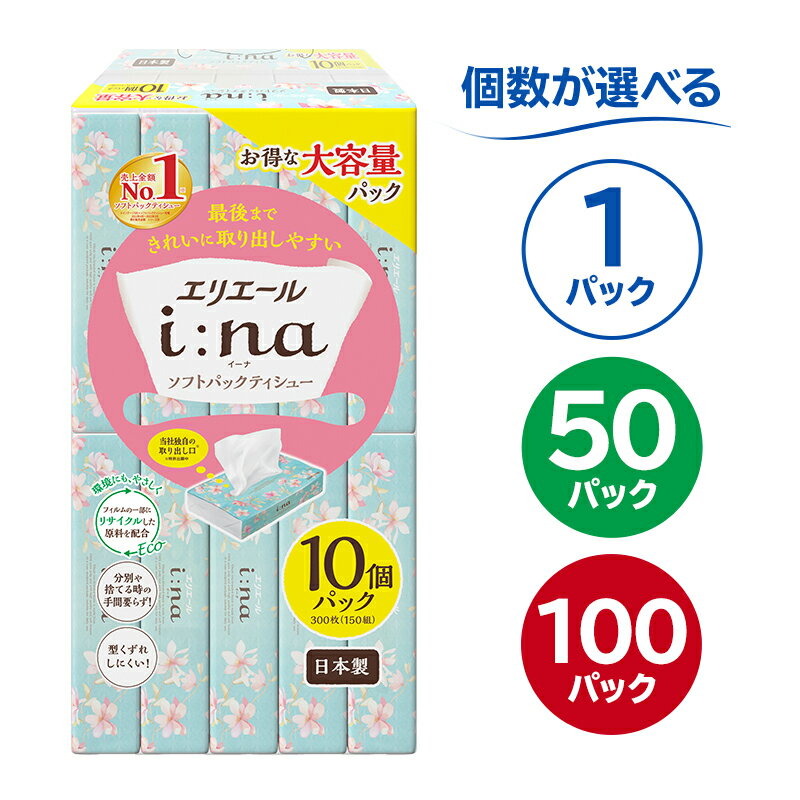 商品説明 名称 【個数が選べる】 エリエール i:na(イーナ)ソフトパックティシュー 内容量 以下よりお選びください。 ・10パック(150W10P×1パック) ・50パック(150W10P×5パック) ・100パック(150W10P×10パック) 原材料 パルプ100% 発送方法 常温 説明 パルプ100%で仕上げた、普段づかいにやさしいやわらかな肌触りです。 安心の日本製。 パッケージにはかわいい花柄デザインをプリント。お部屋を明るく彩ります。 お部屋や水回り、車の中やお出掛け... 15,000円 税込 送料込 カードOK レビュー221件 岐阜県可児市 ![]() | ||