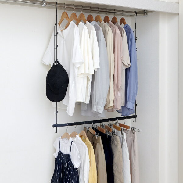 ・ カラー / ブラック・ 製品サイズ / 約 幅 49、55、61、67、73、79 x 奥行 6.5 x 高さ 97.7 cm・ 材質 / 水平バー、アーム : スチール(エポキシ焼付塗装) アーム樹脂部 : ABS樹脂・ 重量 / 753g・ 耐荷重 / 約 15 kg・ 生産国 / 中国・ クローゼット内を有効活用できる、収納物を取り出ししやすいハンガー。 6段階の幅調整がプッシュピンで簡単にできます。また、バーはアームに乗せるだけでの簡単設置で8段階の高さ調節が可能。吊り下げアームには小物が掛けられる便利なフック付きです。 1,180円 税込 送料別 カードOK レビュー6件 なじみハウス ![]() | ||