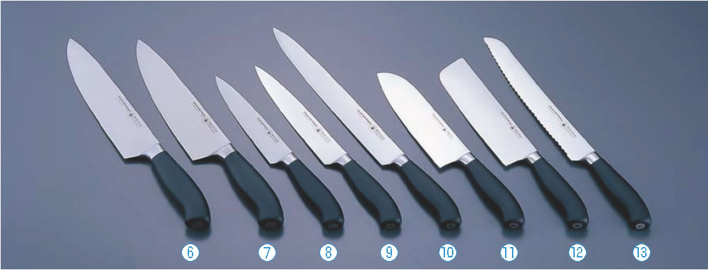 商品は写真の8番、1点のみです。 肉類、魚貝類、野菜、果実、パン類、加工済食品など食品別に使い分けて、衛生管理UP 【刃渡】18cm 【全長】315mm 【g】220g 【背厚】4.0mm 〈特長〉 ●本研刃造り プロの技術者により、本刃付けする前に研ぎなおしを容易にするため、水砥の荒砥・中砥を使用し、刃基を研ぎだしてあります。 ●本刃付け 砥石による本格的な刃付けを施し、鋭い切れ味を長く持続させます。 ●サブゼロ処理 1050℃で焼き入れ後に、?73℃以下に冷却する特別な処理により高い硬度と靭性を与え、切れ味を一段と高めてあります。 ●抗菌効果 抗菌剤が配合されたプラスチック製ハンドル ●刃身/モリブデン・バナジウム鋼 ●ハンドル/ノバロンAGZ330(銀系無機抗菌剤)入り エラストマー樹脂(耐熱温度115℃) 13,112円 税込 送料込 カードOK OPEN キッチン ![]() | ||