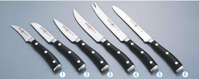 1778. TKG-21-0322-0601 TKG-79-0321-0601 クラッシックアイコン ソーセージナイフ 4126 14cm【業務用包丁】【キッチンナイフ】【洋包丁】【WUSTHOF】【業務用】 ※商品は画像の6番1点になります。 【寸法】全長247mm 【重量】74g 【背厚】1.4mm 【材質】クローム・モリブデン・バナジウム 店舗用識別コード:TKG-77-0303-0601 TKG-78-0309-0601 26,650円 税込 送料込 カードOK PRO-SHOP YASUKICHI ![]() | ||