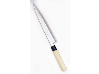 商品概要●商品名:堺孝行 本焼(水焼) 蛸引包丁 36cm●刃渡:360mm●銘:堺孝行本焼●柄:水牛安来の白二鋼を使用し、耐摩耗性に優れ、波紋も鮮やかな和包丁です。※本焼シリーズは、量産出来ないため、商品によっては1〜2ヶ月かかる場合がございます。詳しくはお問い合わせ下さい。本焼(水焼)包丁シリーズ本焼(水焼)安来の白三鋼を使用し、摩擦性にも優れ、本焼き独自の波紋も美しい価値のある逸品です本焼正夫包丁(水焼)元々は関西型の刺身包丁だが現在は全国的、関西では正夫(しょうぶ)関東では柳刃ともいう。本焼ふぐ引包丁(水焼)ふぐ等の薄造り用で柳刃より幅も厚みも薄い。別名テッサ包丁ともいう。本焼 蛸引包丁(水焼)元々関東型の刺身包丁だが最近は柳刃に押されて使う人が減ってきている。 本焼 出刃包丁(水焼)魚や鳥を卸す物だが厚みや長さによってかなりの種類に分かれ用途は広い。本焼 鎌型薄刃包丁(水焼)関西型の野菜切で小さい物は面取りなどの細工包丁として使う。 本焼 薄刃包丁(水焼)関東型の野菜切で一般的には片刃だが地方によって両刃の物もある●刃物など金属製品をお使いになる前に料理で使う包丁や刃物など金属製品は食材を調理した後、すぐに洗浄してください。食材が刃物についたまま、放置されますと錆や水アカの原因となります。また、水洗いをした後、濡れたままで放置すると錆や水アカが発生しますので使用後はふきん等で水気を取り、風通しの良いところで乾燥させて下さい。また柄の付け根は濡れたままにすると腐りやすくなりますのでご注意ください。【2018PO】調理道具なら 厨房卸問屋 名調にお任せください!厨房卸問屋 名調では業務用・店舗用の調理機器、ランキング入賞の人気アイテム、飲食店や施設、イベント等で使う専門の調理器具をいつも格安・激安価格で通販しています。ご家庭でもプロ専門の調理道具を使って、毎日の料理・お弁当作りなどを今まで以上に楽しんでみてはいかがでしょうか?キッチンが楽しくなること請け合いです。「〜に使う道具が無いか?」「欲しい商品があるが、商品名が分からない」など、ご不明な点は、担当:スタッフまでお気軽にお問い合わせください。お問い合わせ:info@meicho.ne.jp 【古より伝わる堺の名刀 堺孝行刃物】 古来から権威の象徴とされてきた日本刀。厳選された鋼を幾重にも折り重ね鍛え上げた刃心は最高の切れ味と輝きを放ち魂が宿ると伝えられています。日本の和包丁とはまさに日本刀の流れを引き継いだ世界に誇れる芸術品でもあります。細部に渡る仕上げのクオリティーは上質な包Tを作り出す職人のプライドでもあり先代より脈々と受け継がれてきた伝承の技でもあります。世界に類をみない独自の形状を持つ和包丁は魚や野菜など異なった食材を切る為に生み出された刃物であり繊細な日本料理には欠かす事の出来ない包丁です。600年の歴史を持つ堺刃物の伝統を守り続ける堺孝行ブランドをぜひ一度お手にとり世界に誇れる匠の技に触れて頂く事をスタッフー同願っております。Japanese swords have been a status symbol from ancient times. The core blade is forged by folding selected steel many times and features supreme sharpness and brilliance; it is has been said that the human soul dwells in the sword.Japanese knives are actually works of art descended from Japanese swords, and we proudly present them to the world. The quality of meticulous workmanship represents the pride of masters who create quality knives, and the quality is ensured by traditional skills that have been continuously inherited from their predecessors. Japanese knives have their own unprecedented shapes and are without parallel in the world as knives created for cutting different foods, including fishes and vegetables, and are vital for delicate apanese dishes. All of our staff members wish that you would pick up the Sakai Takayuki brand products which maintain the traditional skills of Sakais Japanese knives and demonstrate the skills of world class masters. 150,310円 税込 送料込 カードOK 厨房卸問屋 名調 ![]() | ||