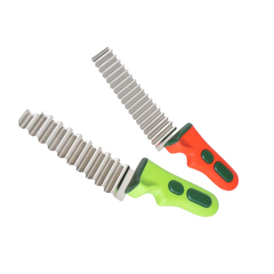 遂に登場!波が大きい凸MAX包丁!使って楽しい♪食べて美味しい♪ お子様も大満足!一瞬で映える料理に大変身!!作って楽しい様々なカット方法!! お子様と一緒に、楽しい料理タイムで会話も弾みます♪ 早速届いたお客様からのお声をご紹介 ほんのひと工夫で、いつもの食卓が華やかな映え料理に大変身! ポイント1 独自特許を含む特殊な製造方法で切れ味も抜群の文句なし! 通常の製品はナミナミの深さが約2mm以下に対して、凸MAX包丁の緑のLサイズは約8mm、赤のMサイズは約4mmと大きな波状にカットできることでより見栄えがよく、 深さがある為、写真を撮影する時も映えるカットで反響間違いなし! ポイント2 握りやすいグリップ仕様で簡単にサクッと軽くカット 刃先が薄いため上から押すだけで簡単に食材をカットすることができます!独自特許を含む特殊な製造方法で抜群の切れ味をキープ。 上部の厚みで強度もしっかり!食材に対して繊細なカットが可能で、美しい見た目の料理を作ることができます。 食材の崩れや圧潰を最小限に抑えるため、風味や食感を損なわずに調理することができます。 ポイント3 女性やお子様でも握りやすいグリップ グリップは親指が掛かりやすい作りにしており、軽く握るだけでサクッとカットができます。 一度試したらわかる、優しく握るだけでもスパッと包丁が通る快感を味わえます。また適度に太さもあり安定して握ることができます。 ※凸MAX包丁は、右手専用です。 【商品情報】 商品名 ののじ 凸MAX包丁 Lグリーン/ののじ 凸MAX包丁 Mレッド 品番 LUDM-015G, LUDM-015R サイズ 全長/約26.5cm、刃渡り/約15cm 約120g Lグリーン(波の深さ約8mm) Mレッド(波の深さ約4mm) 耐熱温度 100度 材質 刃/ステンレス鋼 柄/ポリプロピレン・オレフィン系熱可塑性エラストマー 刃カバー/ポリプロピレン 生産国 中国 用途 飾り切り包丁 知的財産権 特許第6427699号、第6517418号、第6560804号(第6514402号) ※本品は右手専用です。本品で引き切りや皮むきはできません。 ※使用時、食材に沿える手が刃に触れてケガをしないよう「ゴム手袋(中厚手以上)」を着用してください。 ※画面上の色はブラウザやご使用のパソコンの設定により実物と異なる場合があります。 4,150円 税込 送料込 カードOK 横浜みらい 楽天市場店 ![]() | ||