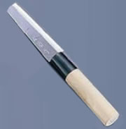 ブロッコリー農家の方に大好評! 込み入った葉の中の野菜の収穫に最適です。 玉日本 ブロッコリー収穫庖丁2 135mm 【商品説明】 ブロッコリーは、込みいった葉の中に包丁を差込んで収穫する為、細型の包丁が使いやすく、実際に使用される方の意見により造られました。 手造りの鍛造品で切れ味が永く持続し、刃峯が厚く曲がりにくい頑丈な造りです。 疲れず楽にスピーディーに収穫できます。包丁のアゴで指を切りにくい安全設計です。 【用途】 ブロッコリーなどの葉に包まれた野菜収穫用に。 【規格】 ■刃渡り : 135mm ■全長 : 267mm ■包丁重量 : 約 63g ■刃身 : 青紙二号鋼 ■柄 : 天然木赤塗り柄 ※改良により仕様変更となる場合がございます。 【携帯・収納に便利な木鞘(別売)】 収穫包丁用 磁石付木鞘 【玉日本 野菜収穫包丁 三枚打 商品一覧】 玉日本 野菜収穫包丁 三枚打 100mm 赤柄付 玉日本 野菜収穫包丁 三枚打 120mm 赤柄付 玉日本 野菜収穫包丁 三枚打 135mm 赤柄付 玉日本 野菜収穫包丁 三枚打 150mm 赤柄付 玉日本 野菜収穫包丁 三枚打 165mm 赤柄付 【収穫包丁・野菜切り包丁 商品一覧】 照秀 ステンレス 収穫包丁 江戸菊水 ステンレス収穫包丁 磁石付 木鞘入 玉日本 改良L型収穫包丁 磁石付 木鞘入 玉日本 丸型収穫包丁 磁石付 木鞘入 玉日本 剣型収穫包丁 磁石付 木鞘入 玉日本 楽々収穫包丁 140mm 直柄 TY-07 玉日本 楽々収穫包丁 140mm 安全柄 TY-08 畑の包丁 角型 165mm 特殊ステンレス鋼 TY-11 畑の包丁 角型 180mm 特殊ステンレス鋼 TY-10 玉日本 白菜用収穫包丁 右用135mm 玉日本 白菜用収穫包丁 左用135mm 玉日本 ネギ切り包丁 黒打 270mm ↑右用150mm ↑左用150mm ↑黒打 300mm ↑右用165mm ↑左用165mm ↑黒打 330mm ↑黒打 360mm ↑磨き 400mm 玉日本 ニンジン用 根茎切包丁105mm 玉日本 万能野菜用 根茎切包丁110mm 玉日本 白菜用株切包丁 90mm 源明利 鍛造ナギナタ包丁 185mm 玉日本 ブロッコリー用 収穫包丁 玉日本 大根の葉切包丁 240mm 5,800円 税込 送料別 カードOK 日用品卸問屋 火の鳥 ![]() | ||