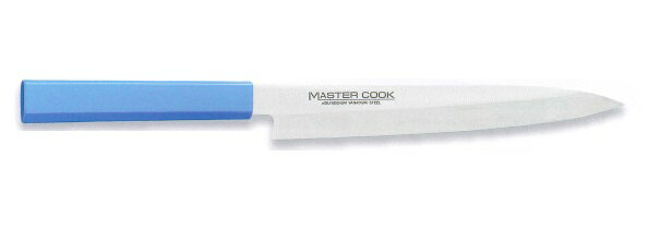※ご注文の際は、色を御指定ください。 注)但し、和風出刃(MCWK210M・MCWK240M)、洋出刃(両刃)MCDKW210Mはブルーのみになります。 ■本刃付け 砥石による本格的な刃付けを施し、鋭い切れ味を長く持続させます。 ■本研刃造り プロの技術者により、本刃付けする前に研ぎなおしを容易にするため、水砥の荒砥・中砥を使用し、刃基を研ぎだしてあります。 ■サブゼロ処理 1050℃で焼き入れ後に、‐73℃以下に冷却する特別な処理により高い硬度と靭性を与え、切れ味を一段と高めてあります。 ■抗菌効果 抗菌剤が配合されたプラスチック製ハンドル。 ■多彩なカラーバリエーション ハンドルカラーは6色あり、肉類、魚介類、野菜、果実、パン類、加工済食品など食品別に利用できるので衛生管理ができます。 ※和風出刃(MCWK210M・MCWK240M)、洋出刃(両刃)MCDKW210Mはブルーのみになります。 【 製品仕様 】 ◇全長:383mm ◇質量:150g ◇背厚:3.0mm ◇材質 ・刀身:モリブデン・バナジウム鋼 ・ハンドル:ノバロンAGZ330(銀系無機抗菌剤)入りエラストマー樹脂 (耐熱温度115℃) 11,220円 税込 送料別 カードOK 厨房・Byonho ![]() | ||