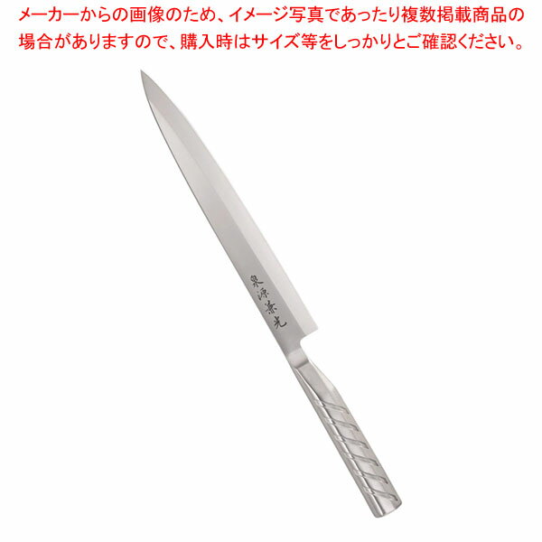 商品概要●商品名:堺孝行 特上鏡面 ふぐ引包丁 27cm●刃渡:270mm●銘:堺孝行白鏡●柄:水牛六角半丸特上(白二鋼)の包丁の表(平の部分)を鏡のように磨いて、錆や汚れが付きにくいようにしました。特上鏡面(白鏡)包丁シリーズ特上鏡面(白鏡)特上(白二鋼)の包丁の表のような丹念に磨いて、サビやよごれがつきにくい様に仕上げました。 特上鏡面 正夫包丁元々は関西型の刺身包丁だが現在は全国的、関西では正夫(しょうぶ)関東では柳刃ともいう。 特上鏡面 ふぐ引包丁ふぐ等の薄造り用で柳刃より幅も厚みも薄い。別名テッサ包丁ともいう。 特上鏡面 出刃包丁魚や鳥を卸す物だが厚みや長さによってかなりの種類に分かれ用途は広い。 特上鏡面 鎌形薄刃包丁関西型の野菜切で小さい物は面取りなどの細工包丁として使う。 特上鏡面 薄刃包丁関東型の野菜切で一般的には片刃だが地方によって両刃の物もある。 ●刃物など金属製品をお使いになる前に料理で使う包丁や刃物など金属製品は食材を調理した後、すぐに洗浄してください。食材が刃物についたまま、放置されますと錆や水アカの原因となります。また、水洗いをした後、濡れたままで放置すると錆や水アカが発生しますので使用後はふきん等で水気を取り、風通しの良いところで乾燥させて下さい。また柄の付け根は濡れたままにすると腐りやすくなりますのでご注意ください。【2018PO】調理道具なら 厨房卸問屋 名調にお任せください!厨房卸問屋 名調では業務用・店舗用の調理機器、ランキング入賞の人気アイテム、飲食店や施設、イベント等で使う専門の調理器具をいつも格安・激安価格で通販しています。ご家庭でもプロ専門の調理道具を使って、毎日の料理・お弁当作りなどを今まで以上に楽しんでみてはいかがでしょうか?キッチンが楽しくなること請け合いです。「〜に使う道具が無いか?」「欲しい商品があるが、商品名が分からない」など、ご不明な点は、担当:スタッフまでお気軽にお問い合わせください。お問い合わせ:info@meicho.ne.jp 【古より伝わる堺の名刀 堺孝行刃物】 古来から権威の象徴とされてきた日本刀。厳選された鋼を幾重にも折り重ね鍛え上げた刃心は最高の切れ味と輝きを放ち魂が宿ると伝えられています。日本の和包丁とはまさに日本刀の流れを引き継いだ世界に誇れる芸術品でもあります。細部に渡る仕上げのクオリティーは上質な包Tを作り出す職人のプライドでもあり先代より脈々と受け継がれてきた伝承の技でもあります。世界に類をみない独自の形状を持つ和包丁は魚や野菜など異なった食材を切る為に生み出された刃物であり繊細な日本料理には欠かす事の出来ない包丁です。600年の歴史を持つ堺刃物の伝統を守り続ける堺孝行ブランドをぜひ一度お手にとり世界に誇れる匠の技に触れて頂く事をスタッフー同願っております。Japanese swords have been a status symbol from ancient times. The core blade is forged by folding selected steel many times and features supreme sharpness and brilliance; it is has been said that the human soul dwells in the sword.Japanese knives are actually works of art descended from Japanese swords, and we proudly present them to the world. The quality of meticulous workmanship represents the pride of masters who create quality knives, and the quality is ensured by traditional skills that have been continuously inherited from their predecessors. Japanese knives have their own unprecedented shapes and are without parallel in the world as knives created for cutting different foods, including fishes and vegetables, and are vital for delicate apanese dishes. All of our staff members wish that you would pick up the Sakai Takayuki brand products which maintain the traditional skills of Sakais Japanese knives and demonstrate the skills of world class masters. 39,550円 税込 送料込 カードOK 厨房卸問屋 名調 ![]() | ||