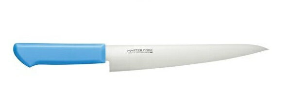 ※ご注文の際は、色を御指定ください。 注)但し、和風出刃(MCWK210M・MCWK240M)、洋出刃(両刃)MCDKW210Mはブルーのみになります。 ■本刃付け 砥石による本格的な刃付けを施し、鋭い切れ味を長く持続させます。 ■本研刃造り プロの技術者により、本刃付けする前に研ぎなおしを容易にするため、水砥の荒砥・中砥を使用し、刃基を研ぎだしてあります。 ■サブゼロ処理 1050℃で焼き入れ後に、‐73℃以下に冷却する特別な処理により高い硬度と靭性を与え、切れ味を一段と高めてあります。 ■抗菌効果 抗菌剤が配合されたプラスチック製ハンドル。 ■多彩なカラーバリエーション ハンドルカラーは6色あり、肉類、魚介類、野菜、果実、パン類、加工済食品など食品別に利用できるので衛生管理ができます。 ※和風出刃(MCWK210M・MCWK240M)、洋出刃(両刃)MCDKW210Mはブルーのみになります。 【 製品仕様 】 ◇全長:405mm ◇質量:160g ◇背厚:2.2mm ◇材質 ・刀身:モリブデン・バナジウム鋼 ・ハンドル:ノバロンAGZ330(銀系無機抗菌剤)入りエラストマー樹脂 (耐熱温度115℃) 7,920円 税込 送料別 カードOK 厨房・Byonho ![]() | ||