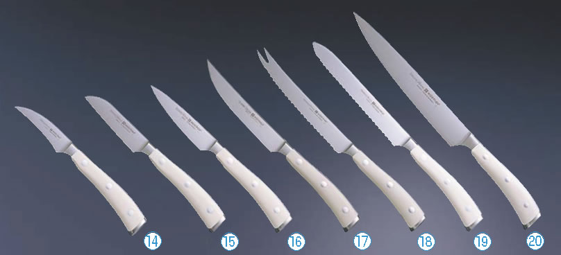 2917. TKG-21-0323-0302 TKG-79-0323-0302 クラッシック ソールナイフ 4518-20 20cm 【業務用包丁】【キッチンナイフ】【洋包丁】【WUSTHOF】【業務用】 ※商品は画像の24番1点になります。 【寸法】全長303mm 【重量】61g 【背厚】1.3mm 店舗用識別コード:TKG-77-0305-0302 TKG-78-0311-0302 24,170円 税込 送料込 カードOK OPEN キッチン ![]() | ||