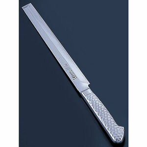 商品概要●商品名:堺孝行 シェフ和包丁 骨切(鱧切)包丁 24cm●刃渡:240mm●銘:堺孝行●柄:水牛八角従来の和包丁と同じ製法で、素材をサビに強い銀三鋼に替えた、全く新しい感覚の和包丁です。シェフ和包丁シリーズシェフ和包丁従来の和包丁と同じ製法で素材をサビに強い銀三鋼に替えた切れ味するどい新感覚の和包丁です。シェフ 正夫包丁元々は関西型の刺身包丁だが現在は全国的、関西では正夫(しょうぶ)関東では柳刃ともいう。 シェフ ふぐ引包丁ふぐ等の薄造り用で柳刃より幅も厚みも薄い。別名テッサ包丁ともいう。 シェフ 蛸引包丁元々関東型の刺身包丁だが最近は柳刃に押されて使う人が減ってきている。 シェフ 出刃包丁魚や鳥を卸す物だが厚みや長さによってかなりの種類に分かれ用途は広い。 シェフ 鎌形薄刃包丁関西型の野菜切で小さい物は面取りなどの細工包丁として使う。 シェフ 薄刃包丁関東型の野菜切で一般的には片刃だが地方によって両刃の物もある。 シェフ 身卸出刃包丁魚や鳥を卸す物だが厚みや長さによってかなりの種類に分かれ用途は広い。 シェフ 骨切(鱧切)包丁鱧等の小骨の多い魚の骨を細かく切る為の専用包丁。 シェフ むき物包丁 ●刃物など金属製品をお使いになる前に料理で使う包丁や刃物など金属製品は食材を調理した後、すぐに洗浄してください。食材が刃物についたまま、放置されますと錆や水アカの原因となります。また、水洗いをした後、濡れたままで放置すると錆や水アカが発生しますので使用後はふきん等で水気を取り、風通しの良いところで乾燥させて下さい。また柄の付け根は濡れたままにすると腐りやすくなりますのでご注意ください。【2017PO】【2018PO】調理道具なら 厨房卸問屋 名調にお任せください!厨房卸問屋 名調では業務用・店舗用の調理機器、ランキング入賞の人気アイテム、飲食店や施設、イベント等で使う専門の調理器具をいつも格安・激安価格で通販しています。ご家庭でもプロ専門の調理道具を使って、毎日の料理・お弁当作りなどを今まで以上に楽しんでみてはいかがでしょうか?キッチンが楽しくなること請け合いです。「〜に使う道具が無いか?」「欲しい商品があるが、商品名が分からない」など、ご不明な点は、担当:スタッフまでお気軽にお問い合わせください。お問い合わせ:info@meicho.ne.jp 【古より伝わる堺の名刀 堺孝行刃物】 古来から権威の象徴とされてきた日本刀。厳選された鋼を幾重にも折り重ね鍛え上げた刃心は最高の切れ味と輝きを放ち魂が宿ると伝えられています。日本の和包丁とはまさに日本刀の流れを引き継いだ世界に誇れる芸術品でもあります。細部に渡る仕上げのクオリティーは上質な包Tを作り出す職人のプライドでもあり先代より脈々と受け継がれてきた伝承の技でもあります。世界に類をみない独自の形状を持つ和包丁は魚や野菜など異なった食材を切る為に生み出された刃物であり繊細な日本料理には欠かす事の出来ない包丁です。600年の歴史を持つ堺刃物の伝統を守り続ける堺孝行ブランドをぜひ一度お手にとり世界に誇れる匠の技に触れて頂く事をスタッフー同願っております。Japanese swords have been a status symbol from ancient times. The core blade is forged by folding selected steel many times and features supreme sharpness and brilliance; it is has been said that the human soul dwells in the sword.Japanese knives are actually works of art descended from Japanese swords, and we proudly present them to the world. The quality of meticulous workmanship represents the pride of masters who create quality knives, and the quality is ensured by traditional skills that have been continuously inherited from their predecessors. Japanese knives have their own unprecedented shapes and are without parallel in the world as knives created for cutting different foods, including fishes and vegetables, and are vital for delicate apanese dishes. All of our staff members wish that you would pick up the Sakai Takayuki brand products which maintain the traditional skills of Sakais Japanese knives and demonstrate the skills of world class masters. 68,950円 税込 送料込 カードOK 厨房卸問屋 名調 ![]() | ||