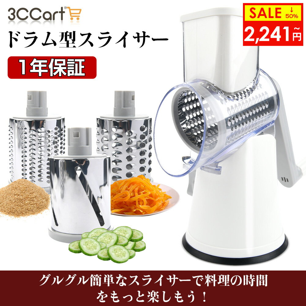 ドラムスライサー 商品特徴 ぐるぐる回すだけで「スライス」「千切り」「すり下ろし」がこれ一台で完了するマルチスライサーです。 3つのシャープなステンレス製のドラムで電源いらず、どこでもグルグルまるでプロのように時短料理ができます。 セット内容 本体、ステンレスドラム(すりおろし/スライス/細切り)ドラムホルダー、ハンドル、雑巾、取扱説明書 外形寸法(約) 260×127×240(mm) 質量(約) 本体675g(組み立て時) 材質 AS、ABS、ゴム、ステンレス鋼 保証 メーカー1年保証 メーカー希望小売価格はメーカーサイトに基づいて掲載しています 4,482円 税込 送料込 カードOK レビュー45件 3CCartスマホケース専門店 ![]() | ||
