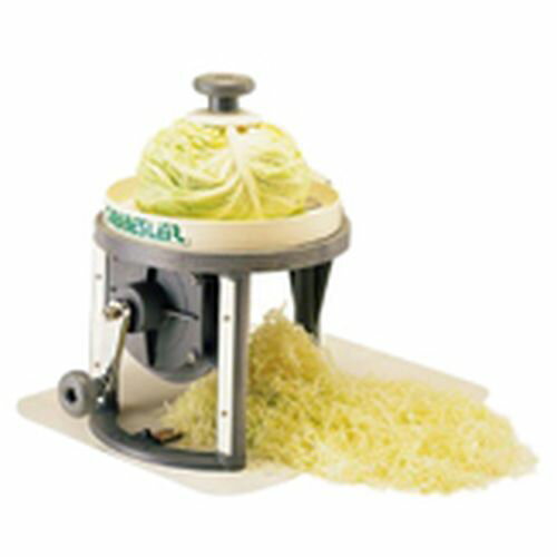 CHIBA キャベスラー(手動) CKY03 JANコード 4963451330002●品名:●直径×高さ(mm):270×270●重量(kg):4.6●材質:本体:PS ABS Nylon■厚さ調節付0~3.5mm■※キャベツ直径240mmまでできます。■〈使用方法〉キャベツの頭を少し包丁で切り落とし、センターシャフトをキャベツの中心に差込み機械にセットします。■上部を軽く押しながらハンドルを回すと千切りキャベツができます。■交換部品 CKY-14 CKY03 CKY04 共通替刃(3枚組)【送料について】北海道、沖縄、離島は送料を頂きます。 37,680円 税込 送料別 カードOK リコメン堂キッチン館 ![]() | ||