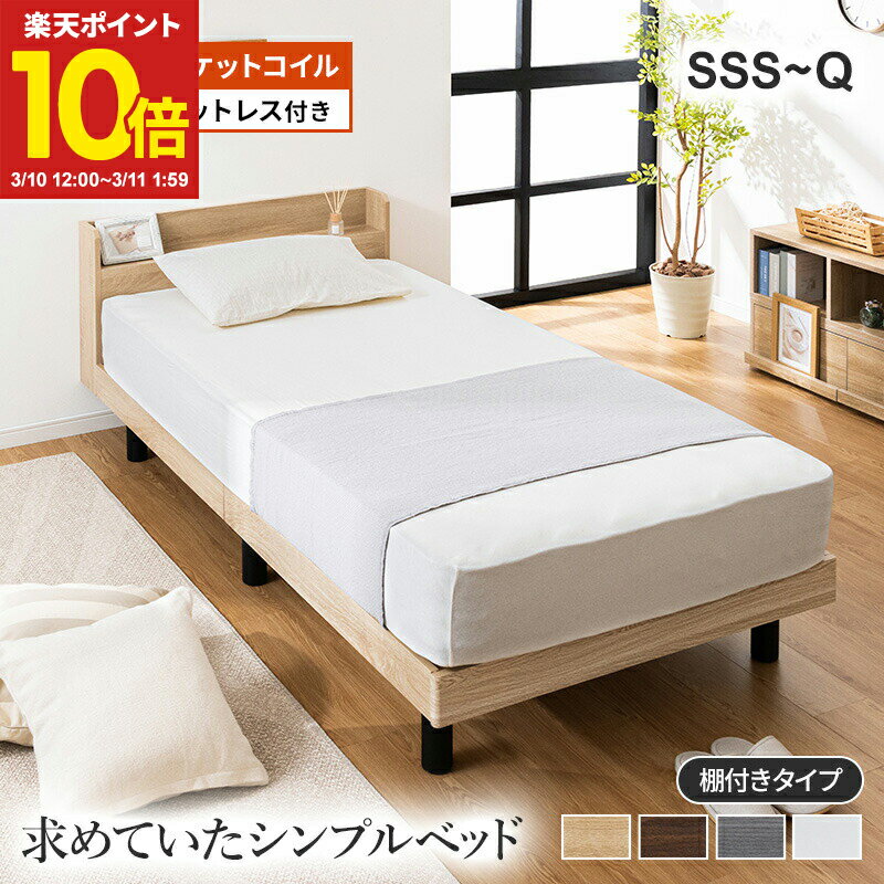商品情報(ベッドフレーム) ■商品名 棚・コンセント付きベッド 【セミシングルショート/セミシングル/シングル/セミダブル/ダブル/クイーン】 ■サイズ 【セミシングルショート】 幅80.5x長さ195x高さ66.5cm 床面有効面積:幅80.5x長さ180cm 【セミシングル】 幅80.5x長さ210x高さ66.5cm 床面有効面積:幅80.5x長さ195cm 【シングル】 幅98.5x長さ210x高さ66.5cm 床面有効面積:幅98.5x長さ195cm 【セミダブル】 幅120.5x長さ210x高さ66.5cm 床面有効面積:幅120.5x長さ195cm 【ダブル】 幅140.5x長さ210x高さ66.5cm 床面有効面積:幅140.5x長さ195cm 【クイーン】※セミシングル2台 幅80.5x長さ210x高さ66.5cm 床面有効面積:幅80.5x長さ195cm ■梱包サイズ 【セミシングルショート】 1梱包:93x39x18cm 【セミシングル】 1梱包:102x38x20cm 【シングル】 1梱包:103x38x18cm 【セミダブル】 1梱包:123x38x18cm 【ダブル】 1梱包:143x38x18cm 【クイーン】 2梱包:102x38x20cm×2 ■耐荷重 約200kg ※全サイズ共通 ■仕様 強化プリント紙化粧繊維板 脚部:パイン天然木無垢材[ラッカー塗装] すのこ:積層合板(LVL) 2口コンセント(1500W/100V) ■備考 [ベッド付属品]脚裏用丸フェルト セミシングル・シングル・セミダブル:6枚 ダブル:9枚 お客様組立(組立時間目安:大人2人で75分) ※ドライバーをご準備ください。 ■保証期間 商品お届け日から1年間 商品情報(マットレス) ■商品名 ポケットコイルマットレス ■サイズ 【セミシングルショート】 幅80x奥行180x高さ20cm 【セミシングル】 幅80x奥行195x高さ20cm 【シングル】 幅97x長さ195x厚み20cm 【セミダブル】 幅120x長さ195x厚み20cm 【ダブル】 幅140x長さ195x厚み20cm 【クイーン】 幅160x奥行195x厚み20cm(セミシングル2枚組) ■梱包サイズ 【セミシングルショート】 1梱包:88x27x27cm 【セミシングル】 1梱包:88x28x28cm 【シングル】 1梱包:103x28x28cm 【セミダブル】 1梱包:67x41x41cm 【ダブル】 1梱包:77x41x41cm 【クイーン】 2梱包:88x28x28cm x2 ■仕様 外装生地:ポリエステル100% 本体:ポケットコイルスプリング コイル数(セミシングルショート462個、セミシングル504個、シングル612個、セミダブル684個、ダブル792個) 詰め物:ウレタンフォーム、不織布、フェルト ■備考 ※マットレスは、圧縮ロールされた状態でお届けいたします。 ※ロットの時期により、マットレスの側面メッシュの色味・キルティングパターンが多少異なる場合があります。 ※モニターの発色具合によるご注意が必須です ■保証期間 商品お届け日から2年間 ご購入前の注意事項 ・ご利用のモニター環境により実際の色と異なる場合がございます。 ・デザインや商品仕様などは予告なく変更する場合がございます。 26,970円 税込 送料別 カードOK レビュー10件 家具・インテリアのMINT楽天市場店 ![]() | ||