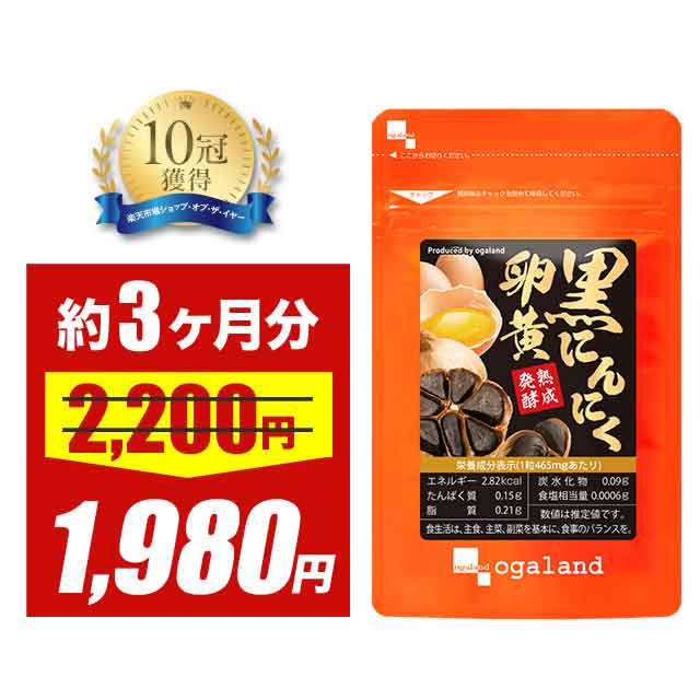 ▼もっとお得な大容量があるかも▼ 他の内容量はコチラ >> \ついでに購入!今週の100円サプリ/ ※5分おきに更新されます 商品名 お徳用黒にんにく卵黄 名称 発酵黒ニンニク含有加工食品 内容量 お徳用黒にんにく卵黄 465mg×90カプセル(約3ヶ月分) 原材料 サフラワー油(国内製造)、発酵黒ニンニク末、卵黄末(卵を含む)、EPA含有精製魚油、ビタミンE含有植物油/ゼラチン、グリセリン、ミツロウ、グリセリン脂肪酸エステル、ビタミンC、植物レシチン(大豆由来) ※商品は原料由来の為、製造時期により色合いが多少異なる場合がございます。 お召し上がり方 1日に1~2粒を目安に、水またはぬるま湯などでお召し上がりください。 ※薬を服用中あるいは通院中の方、妊娠・授乳中の方は医師にご相談の上お召し上がりください。 ※原材料をご確認のうえ、食物アレルギーのある方はご使用をお控えください。 ※開封後はチャックをしっかりと閉めて保存してください。 ※乳幼児の手の届かないところに保管してください。 ※食生活は、主食、主菜、副菜を基本に、食事のバランスを。 主要原料 (1粒あたり):発酵黒ニンニク末 56mg / 卵黄末(卵を含む) 53mg 保存方法 直射日光及び高温多湿の場所を避けて保存してください。 賞味期限 別途商品ラベルに記載 製造者 株式会社 オーガランド 〒899-4341 鹿児島県霧島市国分野口東1294番1 生産国 日本 広告文責 株式会社 オーガランド (0995-57-5032) 区分 健康食品 商品情報履歴 ●2025年4月7日 通常価格が変更になりました。 ●2025年10月7日 原材料が一部変更になりました。 1,980円 税込 送料込 カードOK レビュー1754件 サプリ専門店 オーガランド ![]() | ||