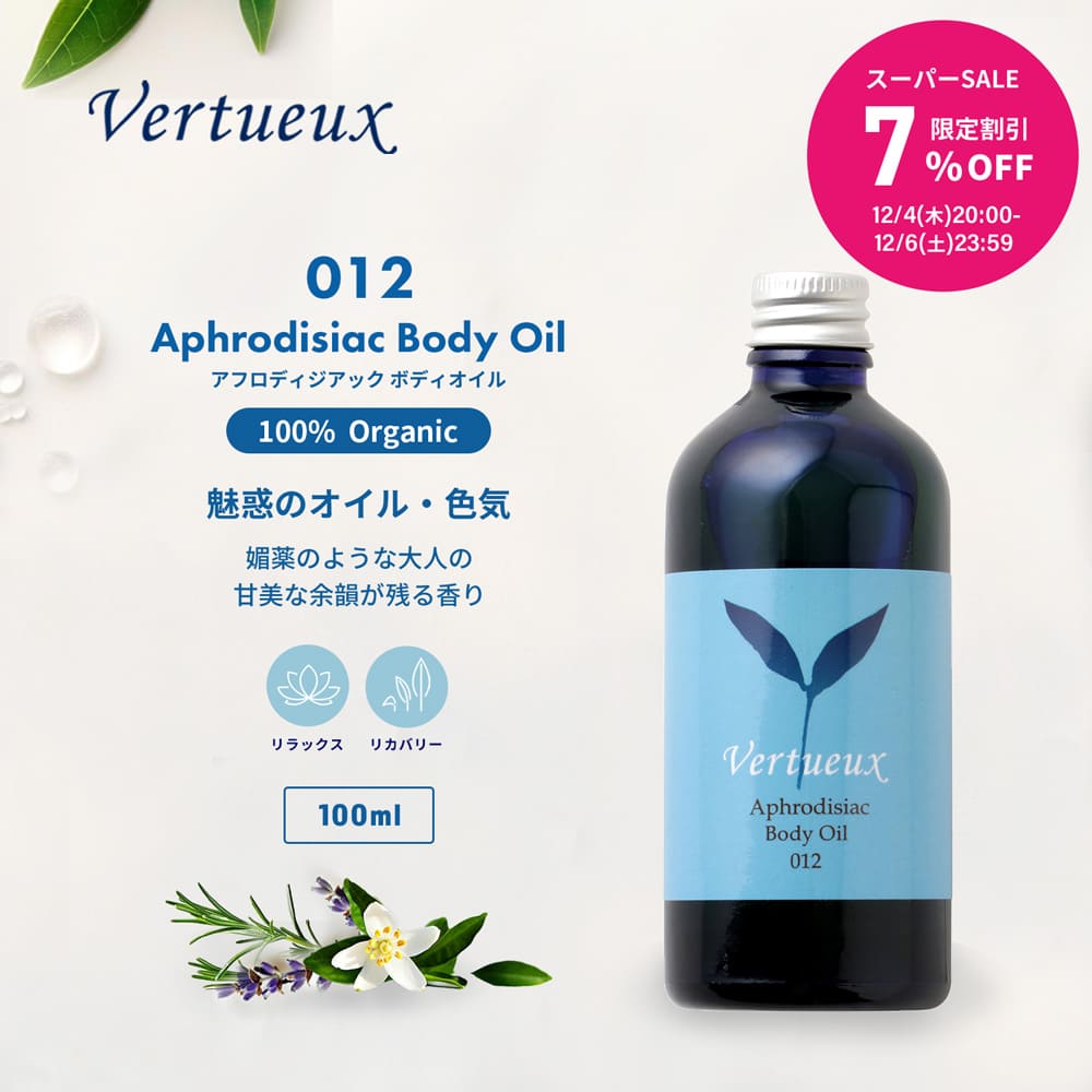 よく一緒に購入されている商品007 100ml リプロダクティブ ボディオ9,718円007 30ml リプロダクティブ ボディオイ3,887円EMU 55ml レミュー ビアンプレシュー 4,840円 魅惑のオイル 美と愛の女神アフロディーテをイメージした、美と官能のボディオイル。サンダルウッドやイランイランなど、古代からの媚薬のレシピが魅力的です。色気、自分の属する性のもつ本来の美しさを引き出すことがテーマ。ロマンティックな気持ち、色気、そして心に至福感を与えるオイルです。セラピューティックな作用としては、緊張を解き放ち、神経にやすらぎとバランスをもたらします。 アロマオイル ボディオイル フェイスオイル があります。オーガニック無添加 保湿 抗菌力 良い香り( いいかおりとタイプ ) 上質な 精油 マッサージ用 マッサージオイルとしても。ラベンダー ティトリー ユーカリ など代表的な精油も配合。 ヴェルトゥーのブレンド アロマオイル。乾燥肌 デリケートなお肌の方にも。 類似商品はこちら012 100ml アフロディジアック ボディ10,670円012 30ml アフロディジアック ボディオ3,887円012 30ml アフロディジアック ボディオ4,180円ヴェルトゥー Vertueux 014 30m4,180円014 30ml プロフォン ボディオイル オ3,762円004 30ml デイタイム ボディオイル フ3,459円004 30ml デイタイム ボディオイル フ4,070円014 100ml プロフォン ボディオイル 9,405円ヴェルトゥー イミューン ボディオイル 00310,450円新着商品はこちら2025/11/22S002 シルク ソープ 85g 未精製 エ4,770円2025/11/22S003 モンモリロナイト ソープ 85g 4,770円2025/11/22S104 ユッカ ソープ 85g 固形石鹸 5,500円再販商品はこちら2025/12/4003 30ml イミューン ボディオイル ア3,887円2025/12/4012 30ml アフロディジアック ボディオ3,887円2025/12/4007 30ml リプロダクティブ ボディオイ3,887円2025/12/04 更新 012 アフロディジアック ・ボディオイルVERTUEUX “APHRODISIAC” BODY OIL 魅惑のオイル 美と愛の女神アフロディーテをイメージした、美と官能のボディオイル。サンダルウッドやイランイランなど、古代からの媚薬のレシピが魅力的です。色気、自分の属する性のもつ本来の美しさを引き出すことがテーマ。ロマンティックな気持ち、色気、そして心に至福感を与えるオイルです。セラピューティックな作用としては、緊張を解き放ち、神経にやすらぎとバランスをもたらします。 香り 媚薬のような大人の甘美な余韻が残る香り。 ブレンド 内側から色気を惹きだすことをテーマに。 容量 100ml 使用期限 ボトルのラベルに記載 全成分 ピーチカーネルホホバ サンダルウッド(インド) ヴェティバー(インドネシア) パチューリ(インドネシア)イランイランエクストラ(コモロス諸島)コリアンダー(ウクライナ)ラベンダー・ハイアルティチュード(フランス) 効能に関する説明におきまして、お客様のお身体の体質、体調または当該製品のご使用方法及び頻度によって個人差、相違がございますので予めご了承いただきますようお願い申し上げます。 当該製品は、成分を生きたものとして取り扱い、試験検査を厳しく行ない、製造国より空輸しておりますが、温度変化、光、熱に敏感な製品でありますので、お客様のお手元に届いた際、高温多湿期の夏場は低温の暗い場所に置かれますことをお奨めいたします。 *100%自然有機原材料のため、開封後6ヶ月以内にご使用ください。 *天然成分のため、香りが変化する場合がございます。 *日の当たるところや高温のところに置かないでください。 *万が一お肌に合わない場合には直ちにご使用をおやめください。 9,923円 税込 送料込 カードOK レビュー15件 ヴェルトゥー 公式ショップ ![]() | ||