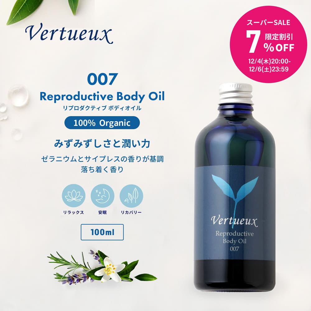 よく一緒に購入されている商品ヴェルトゥー 003 イミューン ボディオイル9,718円012 100ml アフロディジアック ボディ9,923円玄米焙煎 100g コーヒー 珈琲 単品 紅1,080円 女性へのうるおい・みずみずしさをテーマにしたオイル 女性らしさ、女性ならではのうるおいとみずみずしさをからだの芯から引き出し、輝きを与えることがテーマのオイルです。 ヴェルトゥーの【007 リプロダクティブ・ボディオイル】は” 女性へ の うるおい ・ みずみずしさ を テーマ にした オイル 。 女性らしさ 、 女性ならでは の うるおい と みずみずしさ を からだの芯 から 引き出し 、 輝き を与えることを サポート 。 ゼラニウムバーボン と サイプレス の 香り が基調。 ゼラニウム の 香り立ち に木の やさしさ が加わった 落ち着く 香り 。 女性ならではの ホルモンバランス などを 配慮 。 男性 が使用すると 深い リラクゼーション 、 ストレス からの 解放感 がもてるよう調合。 お風呂上がり 、優しく オイル で マッサージ していただくと、硬くなったカラダが 解れていくの を 実感 いただけると思います。 次のような方におすすめです。 リラックス したい方 疲労回復 をしたい方 体調不良 に 悩んでいる 方 自律神経 の乱れを改善したい 方 ご愛用いただいている方から、たくさんの嬉しい評価をいただいております。続けてご使用いただくことで効果が出やすくなり、からだの変化を実感いただけると思います。 体の不調を改善し、明るく日々を過ごされたい方へ【007 リプロダクティブ・ボディオイル】をご検討くださいませ。ご注文お待ちしております。 アロマオイル ボディオイル フェイスオイル があります。オーガニック無添加 保湿 抗菌力 良い香り( いいかおりとタイプ ) 上質な 精油 マッサージ用 マッサージオイルとしても。ラベンダー ティトリー ユーカリ など代表的な精油も配合。 ヴェルトゥーのブレンド アロマオイル。乾燥肌 デリケートなお肌の方にも。 類似商品はこちら007 100ml リプロダクティブ ボディオ10,450円007 30ml リプロダクティブ ボディオイ3,887円007 30ml リプロダクティブ ボディオイ4,180円102 30ml インテューティブ ボディオイ3,663円005 100ml ナイトタイム ボディオイル9,108円005 100ml ナイトタイム ボディオイル10,120円102 100ml インテューティブ ボディオ9,108円102 100ml インテューティブ ボディオ10,120円009 30ml フォー センシティブスキン 12,582円新着商品はこちら2025/11/22S002 シルク ソープ 85g 未精製 エ4,770円2025/11/22S003 モンモリロナイト ソープ 85g 4,770円2025/11/22S104 ユッカ ソープ 85g 固形石鹸 5,500円再販商品はこちら2025/12/4003 30ml イミューン ボディオイル ア3,887円2025/12/4012 30ml アフロディジアック ボディオ3,887円2025/12/4007 30ml リプロダクティブ ボディオイ3,887円2025/12/04 更新 007 リプロダクティブ・ボディオイルVERTUEUSE REPRODUCTIVE BODY OIL 香り ゼラニウムバーボンとサイプレスの香りが基調。ゼラニウムの香り立ちに木のやさしさが加わった落ち着く香り。 ブレンド 女性ならではのうるおい、ホルモンバランスなどを配慮。男性が使用すると深いレラクゼーション、ストレスからの解放感がもてるよう調合。 容量 100ml 使用期限 ボトルのラベルに記載 全成分 ピーチカーネル ホホバ ゼラニウム・バーポン(レユニオン島) クラリセージ(ハンガリー) サイプレス(フランス) フランキンセンス(ソマリア) パチューリ(インドネシア) スイートマージョラム(フランス) ベルガモットFCF(シシリー島) ミルラ(中近東赤海地域) ブラックペッパー(ミドルイーストリージョン) 効能に関する説明におきまして、お客様のお身体の体質、体調または当該製品のご使用方法及び頻度によって個人差、相違がございますので予めご了承いただきますようお願い申し上げます。 当該製品は、成分を生きたものとして取り扱い、試験検査を厳しく行ない、製造国より空輸しておりますが、温度変化、光、熱に敏感な製品でありますので、お客様のお手元に届いた際、高温多湿期の夏場は低温の暗い場所に置かれますことをお奨めいたします。 *100%自然有機原材料のため、開封後6ヶ月以内にご使用ください。 *天然成分のため、香りが変化する場合がございます。 *日の当たるところや高温のところに置かないでください。 *万が一お肌に合わない場合には直ちにご使用をおやめください。 9,718円 税込 送料込 カードOK レビュー9件 ヴェルトゥー 公式ショップ ![]() | ||
