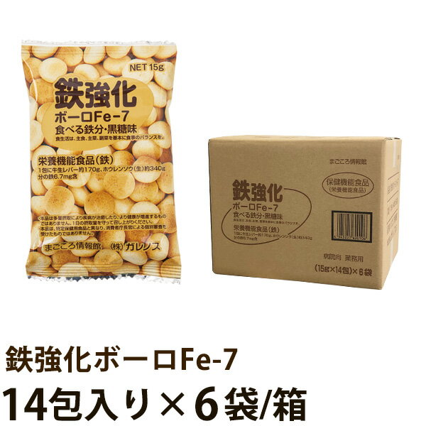 鉄強化ボーロ Fe-7の特徴 ● 1袋(15g)に鉄分6.7mgを含有しています。 1包に生レバー(牛)約170g、ホウレンソウ(生)約340g分の鉄が含まれています。 ● 動物性食品に多く含まれているヘム鉄とピロリン酸第2鉄をバランス良く配合しています。 ● 甘さ控えめで、香ばしく素朴な味。 ミネラルが豊富な黒糖を使用しています。 ● ご高齢の方やお子様にも食べやすいボーロタイプ 口溶けが良いばれいしょでん粉(遺伝子組み換えでない)を使用し、安心してお召し上がり頂けます。 ● 鉄が不足しがちな女性にオススメします。 男性より女性が鉄分が不足しがちです。妊娠中の方やダイエットを行っている方には、特に摂取することをオススメいたします。 栄養成分表示 鉄強化ボーロFe-7 1袋(15g)あたり 1日当たりの栄養素等表示基準値に占める割合 エネルギー 58kcal たんぱく質 0.2g 脂質 0.1g 炭水化物 14.0g 食塩相当量 0.009g リン 16.2mg カリウム21.6mg 鉄 6.7mg(89%) お召し上がり方1日1包(15g)を目安にお召し上がりください。(お子様は1〜3歳で1日1/2包、4〜5歳で1日2/3包、6歳から大人と同じ1日1包をおすすめしております) 包装・価格 15g×14包/袋…864円(税込) (15g×14包)×6袋/箱…5,184円(税込) ガレノスでは、地球にやさしいダイオキシンなどを発生しない包装資材を使用しています。 原材料名 馬鈴薯澱粉(遺伝子組換えでない)、黒糖液、砂糖、卵黄、脱脂粉乳、デキストリン、発酵調味料、加工でん粉、ピロリン酸第2鉄、ヘム鉄、着色料(カラメル)、香料 アレルギー表示卵・乳(脱脂粉乳)本品は小麦・えびを使用した工場で製造しています。 賞味期限 製造後10ヶ月間(常温) Q&A よくあるご質問 Q1. 「ヘム鉄」って何ですか? A1. 「ヘム鉄」とは、動物性食品、例えば牛や豚、鶏、魚などに含まれている鉄分のことです。 これに対して、植物性食品の野菜や穀類に含まれている鉄分を「非ヘム鉄」といいます。 「鉄強化ボーロ Fe-7」に使用している「ヘム鉄」は、「非ヘム鉄」に比べ約10倍*も吸収がいいとされています。 *JTフーズデータより。 Q2. 鉄分不足による貧血と低血圧とは別物です。 A2. 顔色が悪い、立ちくらみがする、ふんばりがきかないなど、一見して症状が同じなので混同 しやすいのが貧血と低血圧です。でも、この二つは全く別物です。 鉄分不足による「鉄欠乏性貧血」は、赤血球をつくる材料である鉄分が不足し、酸素を運ぶヘモ グロビンが足りなくなることにより起こる貧血です。体内の鉄分はたんぱく質と結びついて赤 血球のヘモグロビンの成分となりますが、摂取する鉄分が不足してしまうとヘモグロビンの合 成ができなくなり、結果として貧血を引き起こしてしまうのです。 Q3. 貧血によって引き起こされる症状は? A3. 通常の大人のからだの中には、約3,000〜4,000mgの鉄分があります。その配分は、血液中のヘモグロビンに約65%、肝臓やすい臓に約25%、残りの約10%は筋肉中となっています。 ■貧血によって引き起こされる症状 ・顔色が青くなる ・立ちくらみがする。 ・息切れや動悸がする。 ・疲れやすい。 ・頭痛がする。 など Q4. 鉄分不足による貧血以外の影響は? A4. 鉄分は脳内の神経伝達物質に関係しているといわれています。ある研究では、鉄分が不足すると 脳の活動低下や記憶力の低下を引き起こすという結果が出ています。集中力が落ちた、物覚えが 悪くなった、もの忘れがひどくなった、などの症状が出たら、鉄分の不足を疑ってみてはどうで しょうか。 Q5. 毎日出て行く鉄分量と必要な量は? A5. 鉄分は、一日の生活の中で便や尿、汗などで約1mgほど出て行きます。鉄分は、摂取したうちの約 10%しか吸収されません。従って失われた鉄分を取り戻すには、成人男性で1日10mg、成人女性で1 日12mg、妊娠中の方は1日20mgを食べ物から摂取する必要があります。 Q6. 鉄分を多く含んでいる食べ物は? A6. 動物性食品では、牛レバー、豚レバー、鶏卵、うずら卵、牛肉、豚肉、鶏肉、赤身の魚、スジコ、 赤貝、牡蠣、しじみ、はまぐりなど。植物性食品では、ひじき、あおのり、ほうれん草やパセリ などの青野菜です。 Q7. 鉄分を摂るときの大敵は、お茶などに含まれる「タンニン」ですが・・・ A7. 緑茶や紅茶、コーヒーなどは、鉄分吸収の大敵といわれています。その理由は、それらに含まれている 「タンニン」という成分が鉄分の吸収を悪くするからです。また、ジュース類や加工食品に含まれてい るリン酸、野菜の中にシュウ酸なども、鉄分の吸収を悪くします。 (「鉄強化ボーロ Fe-7」は上記食品による吸収の妨げが少ない天然素材のヘム鉄を使用しています。) Q8. 鉄分の吸収を良くするコツは? A8. 鉄分だけに限らず、栄養素は単独で摂るより複合で摂った方が吸収を高めることはよく知られています。 鉄分は、ミネラルやビタミン群といっしょに摂れば吸収が良くなります。特に、ビタミンCは鉄分を吸収 しやすい形に変えてくれます。また、葉酸も赤血球の形成、熟成に不可欠な酵素です。植物性食品に含ま れる「非ヘム鉄」も
