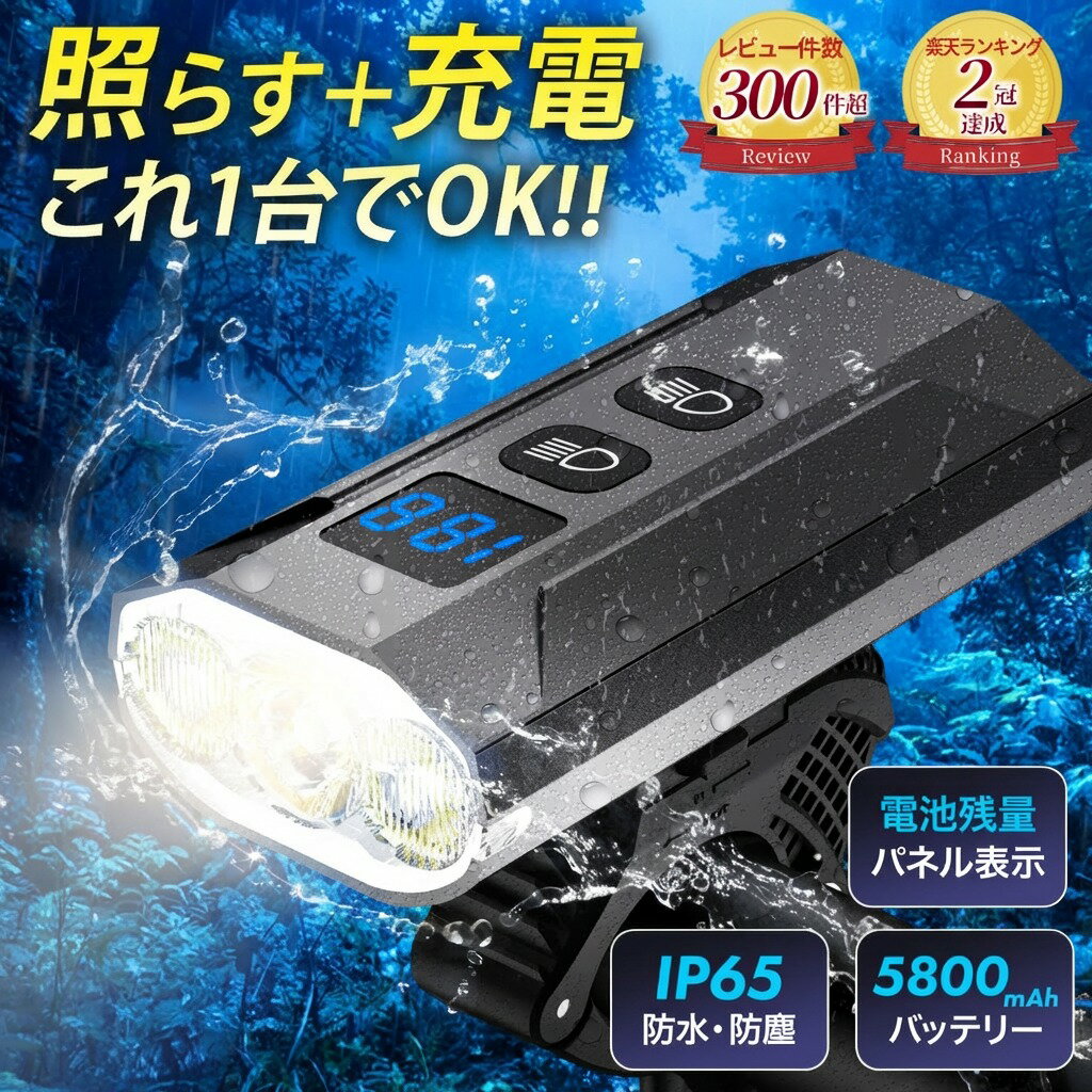 税込 送料込 カードOK  レビュー352件  relief10 \楽天2冠獲得/ 5200mAhの大容量【最強配送対応】自転車 ライト 防水 IP65 防塵 USB充電式 電池残量表示 自転車用ライト ヘッドライト 高輝度 1200ルーメン モバイルバッテリー機能付き 3つ調光モード ライト サイクリング LED 電池 usb充電 おしゃれ