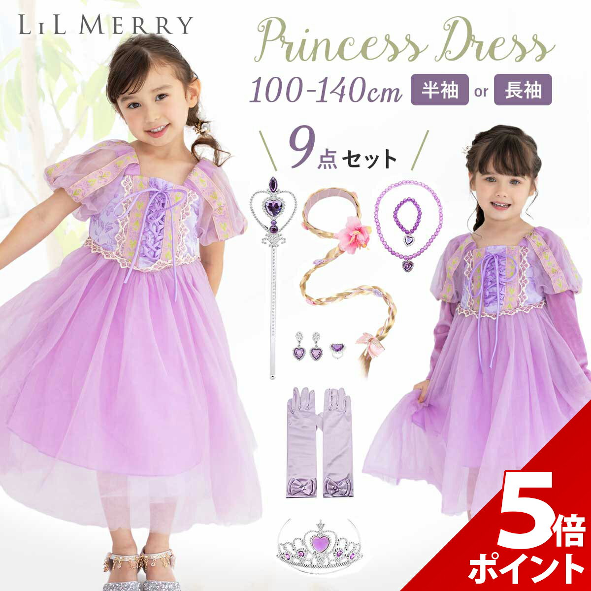 ラプンツェル ドレス コスプレ 子供 衣装 プリンセス コスチューム キッズ ハロウィン お姫様 コス 仮装 女の子 ※本商品の画像は、実物の商品を画像の加工なしで記載しております。イメージ画像のみの商品は実物と大きな差がございますが、本商品は画像と実物に差がございません。 【 憧れのなりきりドレス 】女の子の夢をたくさんつめこんだ本格派プリンセスドレスです。すぐに憧れの『お姫様』に変身できます。 【 夢いっぱいのデザイン 】パフスリーブや胸元の繊細なお花の装飾が目をひきます。光沢のある生地に淡いピンクのオーガンジーを重ね合わせた上品なドレスです。 【 しっかりした生地 】しっかりとした高級感のある生地を使用しています。質感が良く快適な着心地で、背中チャックでお着替えもスムーズです。 【 サイズ展開 】サイズが豊富なので、お子様の身長にピッタリ合ったサイズを選べます。ジャストサイズで可愛い着こなしができます。 【 様々なシーンで大活躍 】ハロウィンやお子様の特別な日の衣装にもピッタリです。可憐なお姫様『ラプンツェル』になりきって仮装イベントを楽しみましょう♪ ご購入から30日間はメーカー保証付きです。 メーカー希望小売価格はメーカーサイトに基づいて掲載していますd201 【 憧れのなりきりドレス 】女の子の夢をたくさんつめこんだ本格派プリンセスドレスです。すぐに憧れの『お姫様』に変身できます。 【 夢いっぱいのデザイン 】パフスリーブや胸元の繊細なお花の装飾が目をひきます。光沢のある生地に淡いピンクのオーガンジーを重ね合わせた上品なドレスです。 【 しっかりした生地 】しっかりとした高級感のある生地を使用しています。質感が良く快適な着心地で、背中チャックでお着替えもスムーズです。 【 サイズ展開 】サイズが豊富なので、お子様の身長にピッタリ合ったサイズを選べます。ジャストサイズで可愛い着こなしができます。 【 様々なシーンで大活躍 】ハロウィンやお子様の特別な日の衣装にもピッタリです。可憐なお姫様『ラプンツェル』になりきって仮装イベントを楽しみましょう♪ ※2024年4月販売分より商品リニューアルの為デザインが変更になっております。商品ページ掲載の商品が届きます。 ■セット内容■ 9点セット(ドレス、ステッキ、ティアラ、イヤリング、ネックレス、ブレスレット、ゆびわ、グローブ、付け髪) ■サイズ(約)■ 100:着丈70cm 胸囲54cm以内 ウエスト54cm以内 袖丈(長袖)41cm 110:着丈75cm 胸囲60cm以内 ウエスト60cm以内 袖丈(長袖)42cm 120:着丈80cm 胸囲62cm以内 ウエスト62cm以内 袖丈(長袖)45cm 130:着丈85cm 胸囲64cm以内 ウエスト64cm以内 袖丈(長袖)50cm 140:着丈90cm 胸囲68cm以内 ウエスト68cm以内 袖丈(長袖)52.5cm ※手作業平置き測定の為、多少の誤差は許容範囲とさせていただきます。 ※袖丈は長袖の袖丈のみ記載しております。 ■素材■ ドレス:ポリエステル、綿 小物:プラスチック、その他 ※商品写真はできる限り実物の色に近づけるよう調整しておりますが、お客様のお使いのモニター設定、お部屋の照明等により実際の商品と色味が異なる場合がございます。 恐れ入りますが色味が理由によるご返品はお受けしておりませんので、予めご了承ください。 ご理解頂きたいこと 当商品の検品について ご注文前にご確認下さい ●よくあるご質問● 4,890円 税込 送料込 カードOK レビュー246件 いいひ 楽天市場店 ![]() | ||