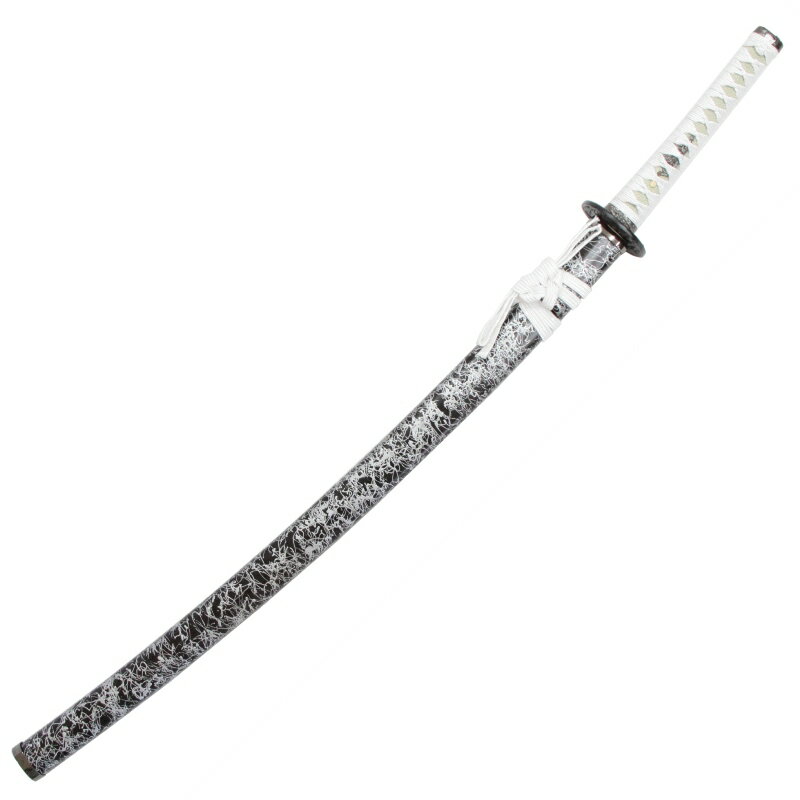 全長 約105cm 刃渡り 約73cm 重量(鞘を払って) 約 950g 重量(鞘付き) 約 1.2kg 刃材 亜鉛合金ダイキャスト・銅・クロムメッキ 刃紋 直刃・三段研ぎ (雷切) 鍔 龍透かし 柄 樹脂・人絹捻巻 鞘 天然木 下緒 人絹平織 包装 カートン箱入り 包装重量 約1.4kg 包装サイズ 約130cm 生産国 日本(岐阜県関市) 備考欄 手入れ具:こちら刀掛・太刀掛台:こちら豊後の戦国大名、大友氏の家臣であった立花道雪は勇猛な武将として諸国から恐れられていました。 ある日、道雪が大木の下で涼んで昼寝をしていたら、急な夕立で雷が落ちてきました。 その雷の中にいた雷神を、道雪は千鳥という刀で斬ったことから、千鳥は「雷切」と呼ばれる様になった訳です。 お断り)本製品は歴史的検証を踏まえたものではなく、単純にお楽しみ頂くための鑑賞用模造刀シリーズです。 16,720円 税込 送料込 カードOK 岐阜関刃物工房V.ROAD ![]() | ||