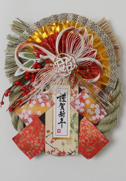 黄金(こがね)の由来 昔から稲穂が田園一面、黄金色に美しく輝きこうべをたれるほど豊作であり金運、商売繁盛の意味で富の象徴とされてきました。 商品データ サイズ高さ 約34センチ サイズ幅 約28センチ 本体材質 水草・水引 付属 吊り下げ紐・フック 華やかな御幣と扇で華満開のリース飾りです!。新春にふさわしい一品です! ご注意 玄関や壁、お車の正面に取り付ける場合には、そのを場所をキズつけないように注意してください。正月飾り 華満開 華やかな御幣と扇で華満開のリース飾りです! 新年に「福」を呼び込むアイテムとなります! 1,540円 税込 送料別 カードOK レビュー2件 ソーコショップ ![]() | ||