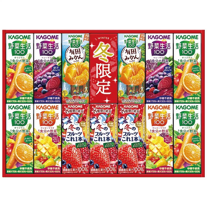 ※お客様のご都合による商品の返品・交換・キャンセルは受け付けておりません。 商品仕様をご確認の上、お間違いの無いようお願い致します。 ※型番通りのお手配になりますのでご注文前に必ず商品の仕様・サイズ・型番・色等を確認の上ご注文お願いします。 当店のお買い物ガイドも併せてご確認ください。 ◆メーカー:カゴメ ◆品名:野菜飲料バラエティギフト(紙容器) | お歳暮 ギフト ◆品番:KYJ-20W (KYJ20W) ◆冬のフルーツこれ一本×3本(200ml) 野菜生活100(... 3,573円 税込 送料別 カードOK 住設と電材の洛電マート ![]() | ||