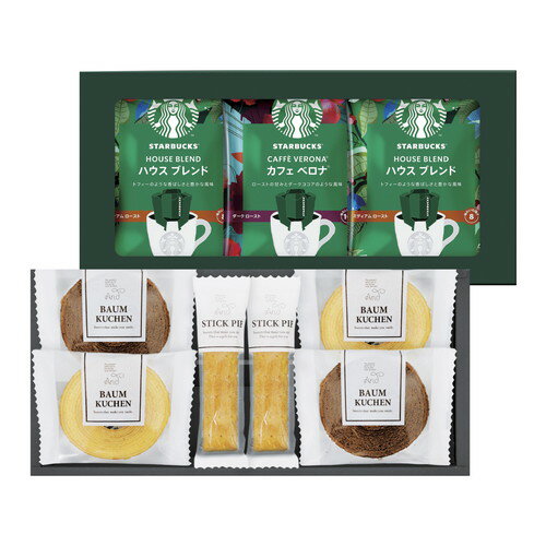 メーカー直送のため、代金引換決済および後払い決済はキャンセルとなります。お申し込み後の変更・キャンセルはお受けできません。また、お届け先様の転居・住所不明・長期不在などが発生した際は商品をご依頼主様へ転送させていただきます。こちらの商品はメーカー出荷のため1注文につき1個の発送となります。(同梱不可)複数お求めの場合はお手数ですが、1配送ごとのご注文をお願い申し上げます。■こちらの商品はお歳暮用ギフト商品になります。■お届けは11月中旬からとなります。■お届け日の指定はできません。■ご注文より1-2週間ぐらいのお届けになります。■紙袋のご用意はございません。※北海道、沖縄、離島へのお届けはできません。※簡易梱包、簡易のしになりますスターバックスコーヒーギフトと、お菓子のセットでワンランクアップのひとときを。■スターバックスオリガミドリップコーヒー(ハウスブレンド×3・カフェベロナ×2)各9g、バウムクーヘン(ココア・バニラ)各2、スティックパイ(プレーン)×2 【卵・乳成分・小麦】■箱135×265×105mm 3,180円 税込 送料込 カードOK トキワダイレクト ![]() | ||