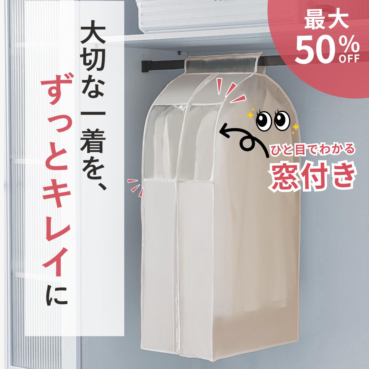 □おすすめポイント 中の洋服を一目瞭然で確認できる前面半分透明タイプ。 透明部分以外は通気性の良い不織布製。裾は縫い閉じてあるのでホコリをしっかりブロックします。 洋服の長期保管にも、日常使いにもお使いいただけます。 カバー内側には防虫剤用ポケット付き。 商品名 1/2透明タイプ センターファスナー洋服カバー スーツ・ジャケットサイズ 3枚入 コート・ワンピースサイズ 2枚入 サイズ スーツ・ジャケットサイズ:幅 60.0cm 長さ 1... 1,100円 税込 送料別 カードOK レビュー29件 ハンガー&インテリアTAMATOSHI ![]() | ||