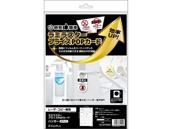 【商品説明】両面にフィルムをコーティングしたそのまま印刷できる便利なPOP用紙です。プリンタで印刷してすぐに使用ができます。両面印刷可能。引っ掛けるだけで使えるハンガー型POPです。油性マジックでの手書きもOK。ボトルポンプに!ドアノブに!首掛けPOPに!品切れPOPに!バータイプに掛けられる!挿し込んでスイングPOPのように使用もできます。【仕様】●仕様:1シート6面付 ハンガー ホワイト ●サイズ:A4(縦297×横210mm)●紙厚:約0.25mm●注文単位... 1,199円 税込 送料別 カードOK ココデカウ ![]() | ||