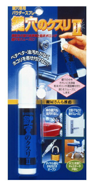 鍵穴専用パウダースプレー! 新配合の強力洗浄剤と粉末ボロンが鍵穴をスムーズに。ベトつかず、手や鍵を汚さずにホコリも寄せつけないので鍵に最適です。 鍵の作動不良の原因になっている油汚れやホコリを揮発性 強力洗浄液で細部に渡り洗浄し、潤滑を促すので動きをスムーズにします。 玄関ドア、自動車、南京錠などの鍵穴に。自転車などのダイヤル式錠に。ダイヤル錠も手を汚さずオープン。引き戸の戸車や椅子のキャスター等に 。用 途:鍵穴、番号錠、戸車、キャスター等の潤滑及び洗浄に正味量:17ml(連続噴射約30秒) 1回使用量/約1秒(約30回使用可)成 分:ボロン(窒化ホウ素)、石油系溶剤、LPG第一石油類8ml LPG ※メール便対象商品です詳しくは→メール便ご利用の詳細はこちら 750円 税込 送料別 カードOK レビュー70件 TOOL FOR U楽天市場店 ![]() | ||