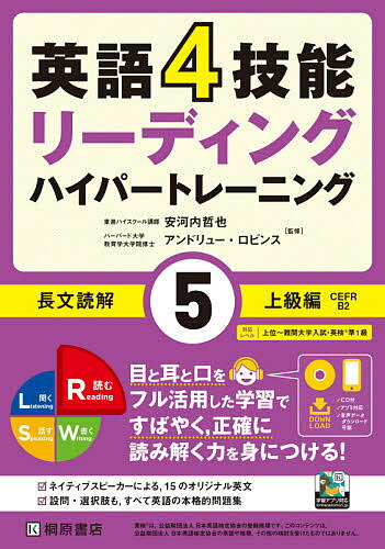著者安河内哲也(監修) アンドリュー・ロビンス(監修)出版社桐原書店発売日2020年07月ISBN9784342205842ページ数231Pキーワードえいごよんぎのうりーでいんぐはいぱーとれーにんぐち エイゴヨンギノウリーデイングハイパートレーニングチ やすこうち てつや ろびんす ヤスコウチ テツヤ ロビンス9784342205842内容紹介長文読解対策もこのシリーズで万全に!・ネイティブスピーカーによる15のオリジナル英文を収録。指示文・本文・設問・選択肢・語注すべてが英語のため、ワンランク上の学習が可能です。(上位〜難関大学入試レベル)・問題形式は英検準1級の筆記試験に準拠。あらゆる試験に対応できる力をつけるために、オーソドックスな形式に!・解答解説の他、語彙リストや速読力を養成する「サイトトランスレーション」練習ページも収録されています。・充実の音声データ!付属CD1枚の他、桐原書店ウェブサイトから問題英文や重要語句の音声のダウンロードが可能。豊富な音声データを活用しての学習は、4技能すべての向上に役立つ!※英検準1級〈CEFR B2〉レベル※本データはこの商品が発売された時点の情報です。 1,628円 税込 送料込 カードOK レビュー1件 bookfan 2号店 楽天市場店 ![]() | ||