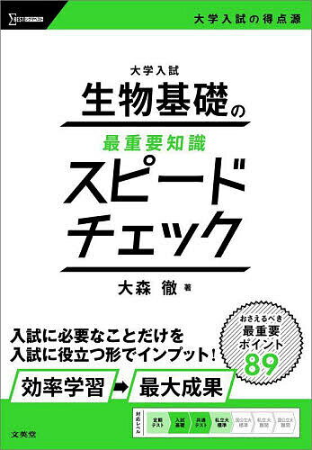 ※商品画像はイメージや仮デザインが含まれている場合があります。帯の有無など実際と異なる場合があります。著者大森徹(著)出版社文英堂発売日2024年ISBN9784578244622ページ数95Pキーワードだいがくにゆうしせいぶつきそのさいじゆうようちしき ダイガクニユウシセイブツキソノサイジユウヨウチシキ おおもり とおる オオモリ トオル9784578244622内容紹介入試に必要なことだけを入試に役立つ形でインプット!どこが重要なのかわからずに、なかなか得点に結びつかない人の悩みを解決する1冊!入試直前期の知識の整理や総仕上げにも最適です。【特長1】必要なところだけ効率的に学習できる本書は、高等学校「生物基礎」の内容を5章14単元に分けており、集中的に解説しています。入試に出やすいものに絞って効率的に学習できるので、短時間で足りない知識を補うことができます。【特長2】入試直結のポイントがハッキリわかる入試直結の必修知識や解き方を89の「最重要」ポイントとしてまとめました。まるで授業の板書のように重要なポイントを視覚的に表現しており、効果的に要点をつかむことができます。【特長3】出題のパターンが効率的につかめる単元末「スピードチェック」、章末「チェック問題」に取り組むことで学習した内容の定着を図ります。また、「例題」を必要に応じて入れており、入試で何が問われるのか、どのように出題されるのかが効率的につかめます。※本データはこの商品が発売された時点の情報です。 880円 税込 送料込 カードOK bookfan 2号店 楽天市場店 ![]() | ||