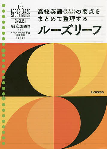 1829. 【送料無料】ルーズリーフ参考書高校英語 ※商品画像はイメージや仮デザインが含まれている場合があります。帯の有無など実際と異なる場合があります。出版社Gakken発売日2022年05月ISBN9784053055132ページ数144Pキーワードるーずりーふさんこうしよこうこうえいご ルーズリーフサンコウシヨコウコウエイゴ9784053055132内容紹介すべてのページを1枚ずつはがして使える,ルーズリーフ型の参考書。空欄を埋めるだけで,英語の要点がそれぞれ1枚にぎゅっとまとまります。■いちばん使いやすいカタチにカスタマイズできる空欄を埋めていくだけで,あっという間に『まとめルーズリーフ』が完成!イラストや表を上手に使って,わかりやすくまとめられるように仕上げました。テストや授業の範囲に合わせて,自由に入れ替えれば,簡単に自分だけの参考書をつくることができます。■コクヨのキャンパスルーズリーフ(*1)とのコラボで使いやすさ◎コクヨオリジナルペーパー(*2)を使用しているため,書き心地も抜群!学校で配られるプリントや白紙のルーズリーフなどといっしょに管理できるので,ますます使い方が広がります。※東大合格生の3人に2人が使用経験のある“ドット入り罫線”を使用(コクヨ調べ)■便利なサポートアイテムも豊富に収録「いつでもチェック!重要シート」は,1年間を通していつも持っていたい,重要内容だけを集めた優れモノ。さらに,バインダーでいっしょに管理できる“穴あき”赤フィルター付き!ほかにも時間割や年間予定表など,充実した内容であなたの勉強をサポートします。(*1)Campusは,コクヨ株式会社の登録商標です。(*2)コクヨ キャンパスルーズリーフ 「代表品番:ノ-836」シリーズと同じ紙を使用。※本データはこの商品が発売された時点の情報です。 1,375円 税込 送料込 カードOK bookfan 2号店 楽天市場店 ![]() | ||