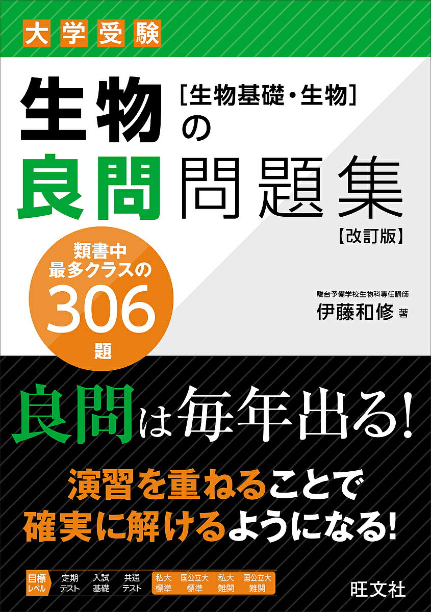 ※商品画像はイメージや仮デザインが含まれている場合があります。帯の有無など実際と異なる場合があります。著者伊藤和修(著)出版社旺文社発売日2025年07月ISBN9784010354780ページ数223,175Pキーワードだいがくじゆけんせいぶつのりようもんもんだいしゆう ダイガクジユケンセイブツノリヨウモンモンダイシユウ いとう ひとむ イトウ ヒトム9784010354780内容紹介大学入試で類題の出題が予想される、学習効果の高い「良問」問題集です。問題編224ページ、解答・解説編176ページです。■3段階の難易度の問題を集めました。生物基礎・生物の入試問題306問を3段階の難易度で掲載しています。確認問題…入試問題を解くための準備として、基本事項を確認できる問題。必須問題…必ずおさえておきたい、入試の典型的な問題。レベルアップ問題…一度は解いておきたい、入試で差のつく問題。■解きたい問題をすぐに探せる学習ナビゲーターがついています。問題のテーマや形式などに応じて、解きたい問題を効率よく探すことができます。また、「必ず解いた方がいい問題」を解いて、入試直前対策もできます。■使いやすい完全分離製本問題編と解答編の2冊に分離させることができるので使いやすいです。※本データはこの商品が発売された時点の情報です。 1,760円 税込 送料込 カードOK bookfan 2号店 楽天市場店 ![]() | ||