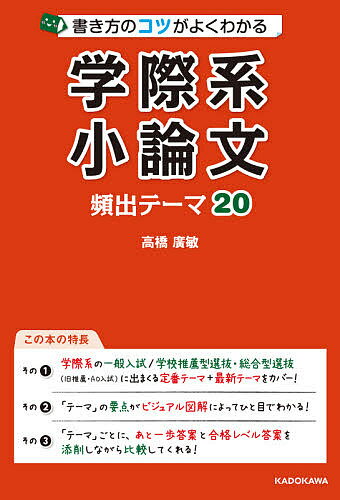 ※商品画像はイメージや仮デザインが含まれている場合があります。帯の有無など実際と異なる場合があります。著者高橋廣敏(著)出版社KADOKAWA発売日2021年02月ISBN9784046049971ページ数255Pキーワードかきかたのこつがよくわかるがくさいけい カキカタノコツガヨクワカルガクサイケイ たかはし ひろとし タカハシ ヒロトシ9784046049971内容紹介大好評を博している学部・系統別小論文対策シリーズの新アイテム。今回の対象は、文系・理系の垣根を越えて学べると近年大人気の学際系学部・系統の対策。この分野は文理の区別がないため、出題が多岐にわたります。そんな、つかみどころのない学際系小論文の勉強に、「何を書くべきか」「どう書くべきか」をハッキリ示してくれるのがこの本。全20の「テーマ」で文系・理系両方の頻出トピックをカバー。現在世の中を揺るがせている「新型コロナウイルス感染症」のトピックも1「テーマ」分掲載。定番出題傾向と最新出題傾向の両方をおさえているので、水も漏らさぬ万全の対策が立てられます。学際系受験者全員必携の奥義書です。第1章 リベラル・アーツ テーマ1 学際系学部の存在意義 テーマ2 コミュニケーションと人間関係第2章 国際関係 テーマ3 海外に紹介したい日本の文化 テーマ4 若者の「海外離れ」はほんとうか テーマ5 異文化理解 テーマ6 グローバル化のプラス面とマイナス面第3章 情 報 テーマ7 インターネットのプラス面とマイナス面 テーマ8 ネット依存の原因と対策 テーマ9 SNSのプラス面とマイナス面 テーマ10 読書の光景の変化 テーマ11 「ソサエティー5.0」の世界第4章 社 会 テーマ12 格差社会と貧困問題 テーマ13 個人と社会の関係 テーマ14 ダイバーシティのあり方第5章 教 育 テーマ15 あるべき教師の姿 テーマ16 いじめと差別 テーマ17 教育格差 テーマ18 教育をめぐる新たな動き第6章 芸 術 テーマ19 社会における芸術の役割特別章 新型コロナウイルス感染症 テーマ20 コロナ後の世界をどう生きるか※本データはこの商品が発売された時点の情報です。目次第1章 リベラル・アーツ/第2章 国際関係/第3章 情報/第4章 社会/第5章 教育/第6章 芸術/特別章 新型コロナウイルス感染症 1,430円 税込 送料別 カードOK bookfan 1号店 楽天市場店 ![]() | ||