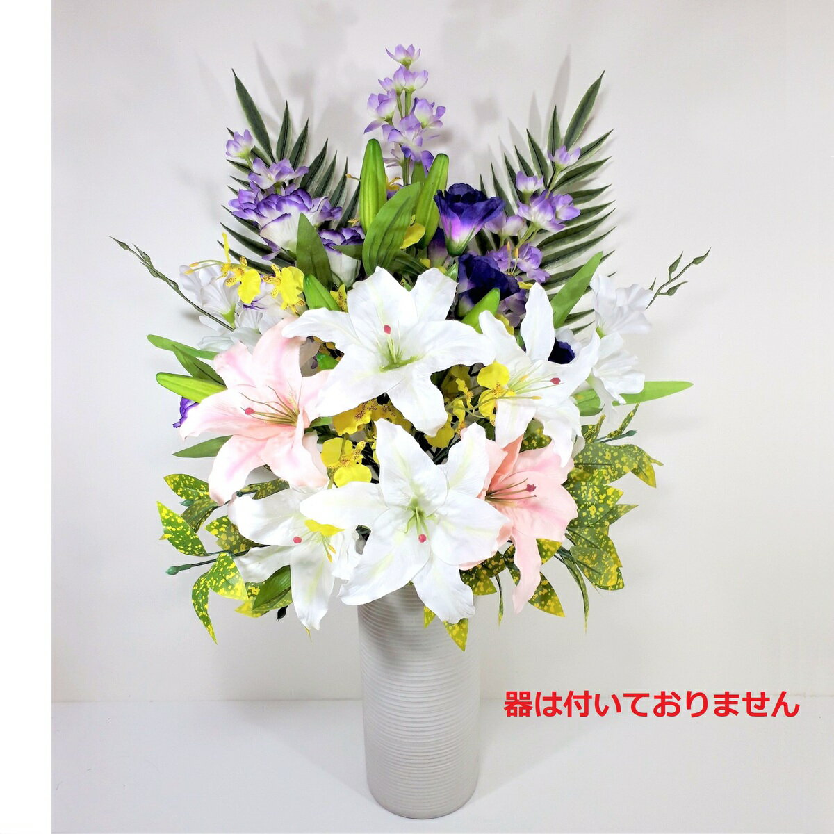 商品情報サイズ高さ:約42cm(全長)、幅:約18cm、奥行き:約16cm入り数1対(2束)主な用途キーワードお墓参り お悔やみ 供養 ペット供養 四十九日 百カ日 お盆 初盆 お正月 年末年始 お彼岸 秋 春 法要 法事 祭壇用 帰省 月命日 命日 供花 お供え花 周忌 墓花 仏花 お墓 墓 新盆 花束 ブーケ モダン 高級 デザイン おしゃれ 手入れ不要 アーティフィシャルフラワー シルクフラワー 等【優しい雰囲気が好きな方におすすめ!】ふんわりと優しい雰囲気、質感の淡い色の大きな菊をメイン花材としたお供え花です。 造花ですので、仏壇、祭壇など室内でも飾っていただけます。 リアルな見た目と触り心地で、本物の花のような美しさです。 ボリューム感があり、優雅な雰囲気を演出し空間を華やかに彩るとともに、落ち着いた色合いがお墓の雰囲気に調和します。 季節を問わず、お手入れ・水替え不要、猛暑の夏場でも枯れることなく、美しさを長く保ってくれます。お墓参りに頻繁に行くことが困難な方や暑い時期や長期不在時にお勧めです。 MEMORIES PREMIUM:花びらの質感だけでなく、茎や葉もまるで生花のようなリアルで精巧な最高級の造花を使用したシリーズ。 【サイズ】 高さ:約42cm(全長)、幅:約18cm、奥行き:約16cm 花立ての大きさに合わせて、広がり・高さをご自由にご調整いただけます。 一般的に多い12cm前後の花立てに合うようカットしていますが、ワイヤーの長さを曲げて調整していただくことも可能です(ワイヤーの切れるペンチなどでカットしていただくことも可能です)。 【入り数】 2束(1 対) ■いつまでもつの? 屋外における耐久テストで3ヶ月以上もつ造花を採用しています。 「次に行くまでの間」「3ヶ月、半年に1度変える」などぜひお試しください。 生花も飾りたい場合、生花をお供えするタイミングで造花は自宅で一時的に保管し、また生花処理後に再び造花をお供えすることもお勧めいたします。 【ご購入に際して】※花器は商品に含まれません。 ※石などを重りとして花立ての中に入れると、お供え花が安定し、風にも飛ばされません。なかなか石を見つけられない方々向けに石のオプション販売も行っています。 ※基本的に手入れは不要です。汚れが気になる場合は、お取り替えください。生花と異なり長くご利用頂けますが、気温、日当たり、雨風等使用環境によって差は生じ、状態の永年維持を保証するものではありません。定期的な交換をお勧めしております。 ※商品写真はできる限り現品を再現するよう心がけておりますが、ご使用のモニターにより、若干差異が生じる場合がございます。あらかじめご了承ください。 ※仕入れ状況等により花材が異なる場合がありますが、デザインが大きく異なることはありません。※当店では在庫を複数サイトで共有しているため、同時にご注文があった場合は売り切れとなる可能性がございます。 【配送に関するご注意】 当店ではスムーズなお届けのため、下記内容についてあらかじめご了承いただきますようお願いいたします。 - 当日出荷について 「当日出荷」の表記がある商品は、楽天市場上では【15時までのご注文】と記載されていますが、当店契約倉庫の運営上、【13時(午後1時)までのご注文】のみ当日出荷が可能です。ご了承ください。 - 指定日配送について 13時以降のご注文で翌日着をご指定いただいた場合、システム上エラー扱いとなり、出荷までに数日お時間をいただく場合がございます。 - 指定日なしの場合 ご指定日がないご注文も、システムの都合により出荷まで数日かかる場合がございます。 -その他 楽天最強配送対象商品であっても、お届け地域によって最短お届け日が翌日ではないことがあります。実際の最短お届け日はお届け先をご指定の上、ご確認ください。 対象商品の在庫状況等によって、出荷倉庫や商品をお届けする配送会社が異なる場合があります。ご了承ください。 お正月やお盆期間中は、交通事情や配送会社の配送状況等により通常よりお届けにお時間がかかる場合がございます。お届け日時をご指定頂いても、ご希望日時に配送できない可能性がございます。ご了承ください。誠に恐れ入りますが、日程に余裕を持ってご注文、お届け日時指定頂けますようお願い致します。 お客様にはご不便をおかけいたしますが、何卒ご理解賜りますようお願い申し上げます。 【領収書をご希望のお客様】 購入履歴詳細から領収書を発行頂けます。 【購入履歴】→【注文詳細】→【領収書・請求書】→「発行する」をクリック 領収書の発行方法詳細は以下URLをご参照ください。 https://ichiba.faq.rakuten.net/detail/000006734 9 7,200円 税込 送料別 カードOK レビュー2件 高級造花専門店 Salon d’or ![]() | ||