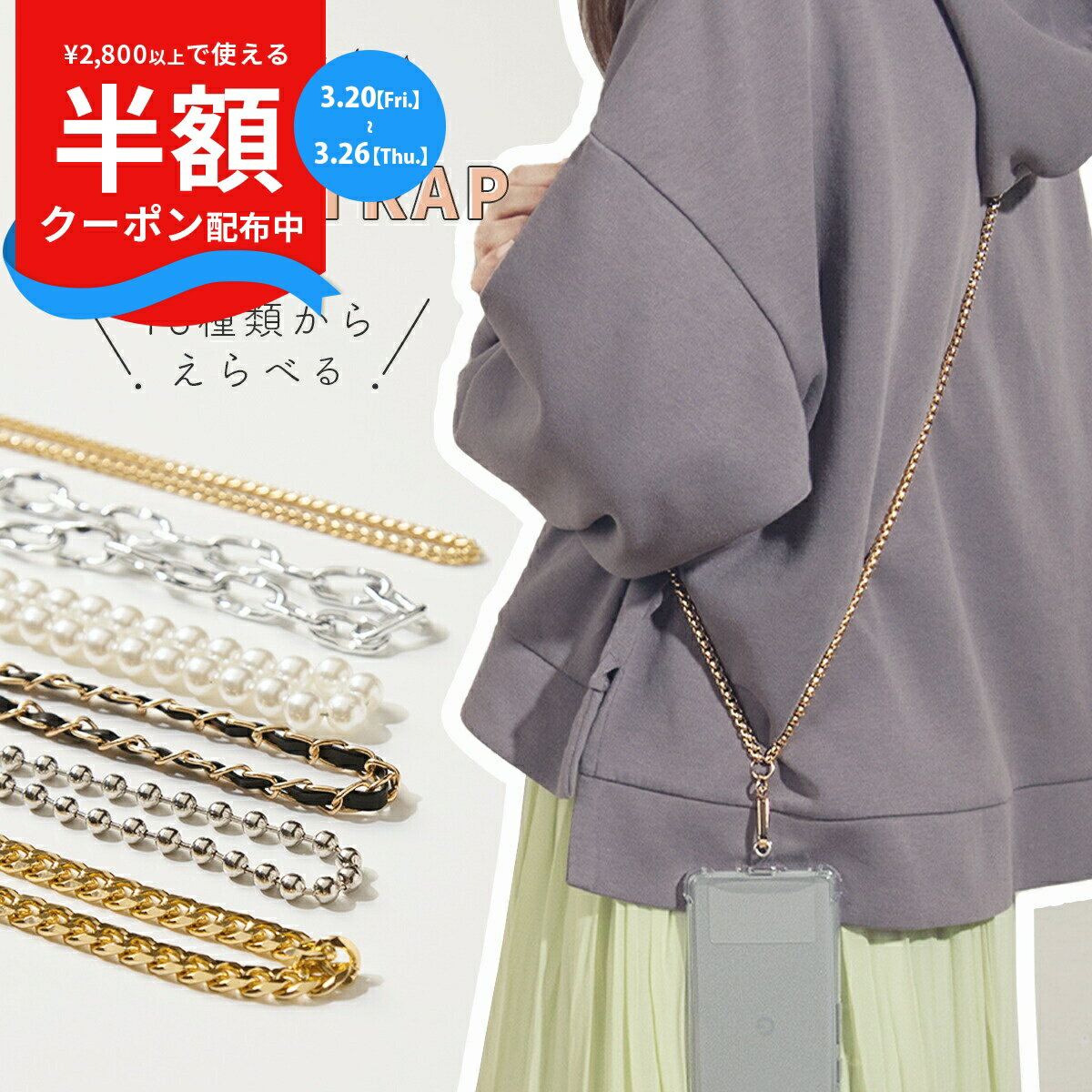 商品名称スマホショルダー チェーン商品説明「はさむだけ」スマホケースがショルダー型に!アタッチメントをケースとスマホの間にはさむだけ!お手持ちのケースがスマホショルダーに!見た目はしっかり使い心地は軽やかに身につけていても負担になりにくいように、軽量なつくり。チェーンやパールのサイズ感も大きすぎず、小さすぎず、程よく存在感のあるサイズです。全長は約62cm。肩や首から下げるのに程よい長さです。いつものスマホがおしゃれに変わる... 1,000円 税込 送料別 カードOK レビュー19件 名入れスマホケースエックスモール ![]() | ||