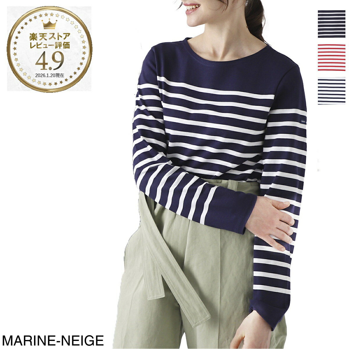 BRANDセントジェームス/SAINT JAMESITEMボートネック 長袖Tシャツ/NAVAL ナヴァルItem No.2691-kd-naval-neige-tulipe, 2691-fa-naval-marine-neige, 2691-88-naval-neige-marine管理: CCRED CCBLU TTMN TTWNセントジェームス/SAINT JAMES ボートネック 長袖Tシャツ "NAVAL ナヴァル"セントジェームスを象徴するピッチの細いパネルボーダー柄を、ゆるやかなボートネックで表現したバスクシャツの定番「NAVAL(ナヴァル)」。本作はフランス海軍の水兵たちの制服であったことから命名されたと言われ、首元や袖周りの無地の切り替えがより一層すっきりとした印象を与えてくれます。爽やかでクリーンな佇まいはもちろん、その洗練されたデザインの美しさは唯一無二の魅力。世界中の男女に愛されている永遠のスタンダードです。【素材・風合い】吸湿性に優れた上質なコットンを100%使用しています。同じ定番のバスクシャツである「OUESSANT(ウエッソン)」や「GUILD(ギルド)」よりも細い番手の糸を採用しており、やや薄手で比較的さらりとした着心地でお楽しみいただけます。色合いは美しいまま、着込むほどに肌なじみが増してゆくため、より長くお手元でご愛用いただける逸品です。【ブランド解説】1889年に創業したマリンスタイルの先駆的存在である「SAINT JAMES(セントジェームス)」。その確かな手仕事ぶりは「伝統を正しく継承しフランスの精神を伝達する企業」として高く評価されており、自社工場において伝統的な手法と近代的なシステムを共存させながら、常に一定の高い品質を保ち続けております。特にノルマンディーの海の暮らしから生まれたコットンシャツは、着込んで洗ってを繰り返していくたびに風合いが増し、纏う方の身体に馴染んでいく、暮らしに寄り添うパートナーのような存在。また経年変化で味わいが出る一方で、ジャージー生地に編む前に堅牢な「先染め」を施すことにより、初めて袖を通したかのような美しい色彩を常に保ち続けてくれます。洗濯を重ねても色落ちや色褪せがしにくく、エレガントな佇まいのまま永くご愛用いただける紛うことなき名品です。※デザインは男女ともに同じです。小さいサイズを女性用、大きいサイズを男性用として、採寸表を参考にご自身にフィットするサイズをお選びください。※素材の特性上、洗濯による収縮が予想されます。ゆとりを持ったサイズ選びをおすすめいたします。NEIGETULIPEMARINE-NEIGENEIGEMARINE表地:100%コットン有料ラッピング(200円税込)希望の方はこちら胸囲肩巾袖丈裄丈着丈XSサイズ86396180.563Sサイズ9341.5638464.5Mサイズ10044658766Lサイズ10746.5679067.5XLサイズ114496993.569XXLサイズ12151.5719770.5 10,000円 税込 送料込 カードOK レビュー39件 モダンブルー楽天市場店 ![]() | ||